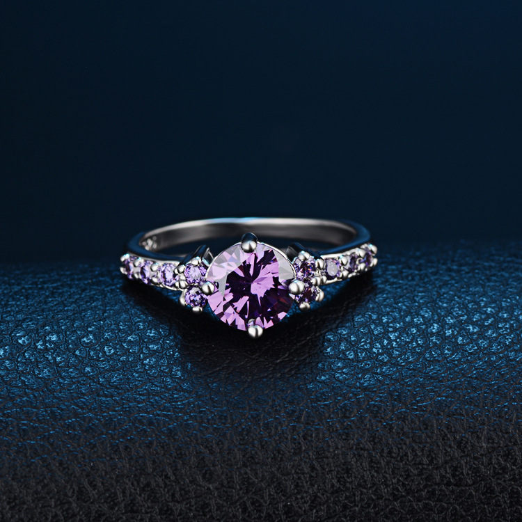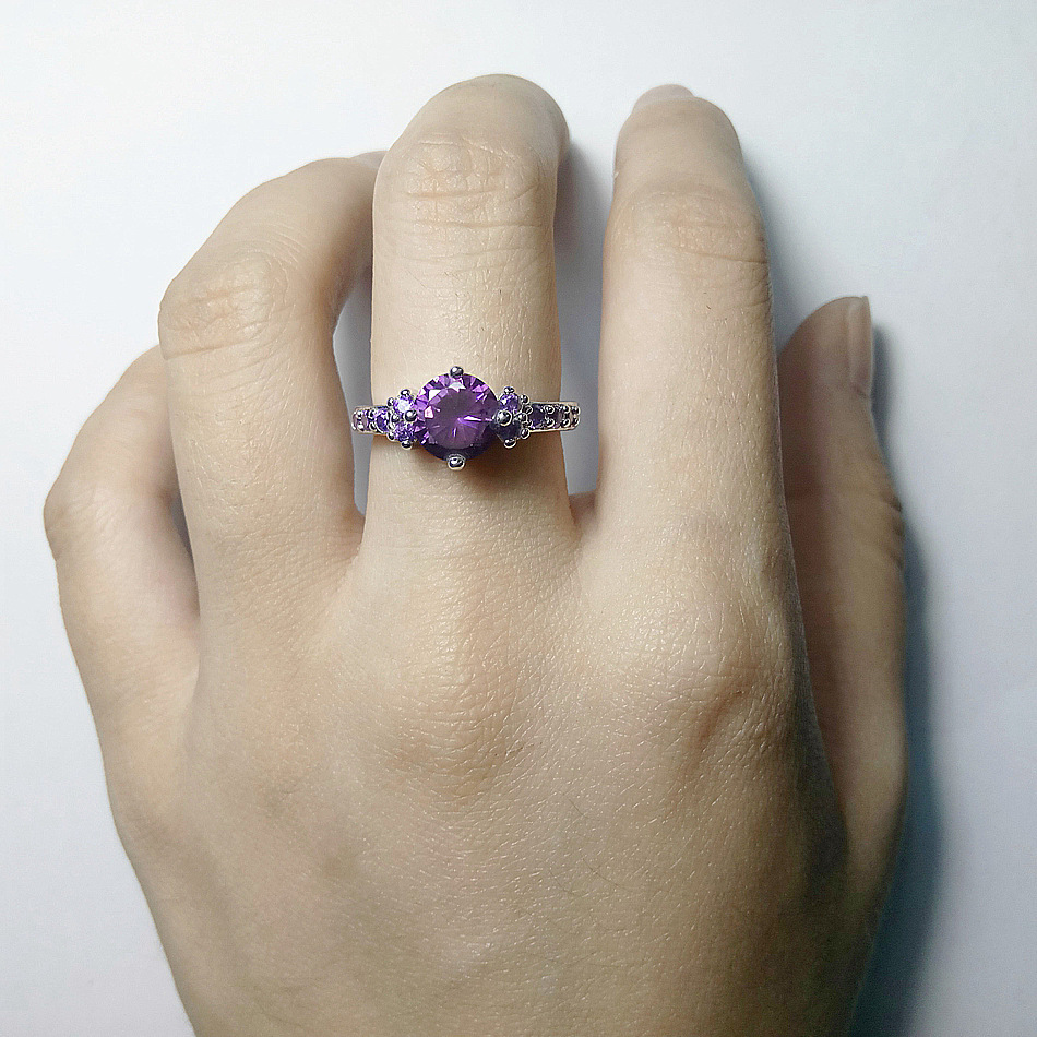 CiNily Violet Filled Finger Rings With Stone Silver Plated Purple Lilac Luxury Summer Cute Romance Fully-Jewelled Woman Girls