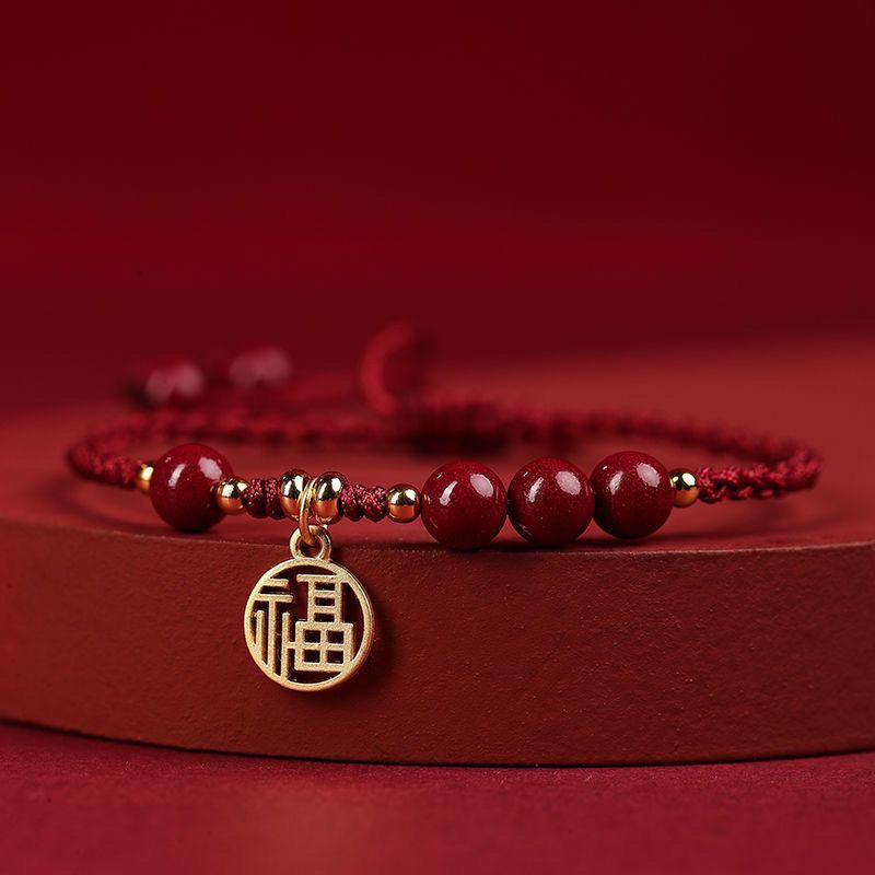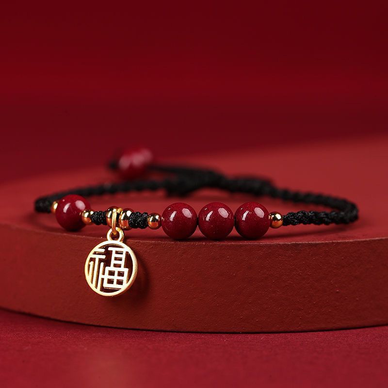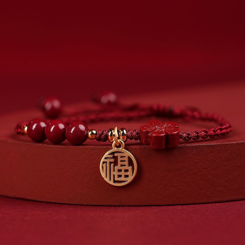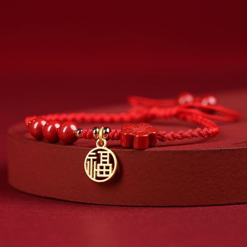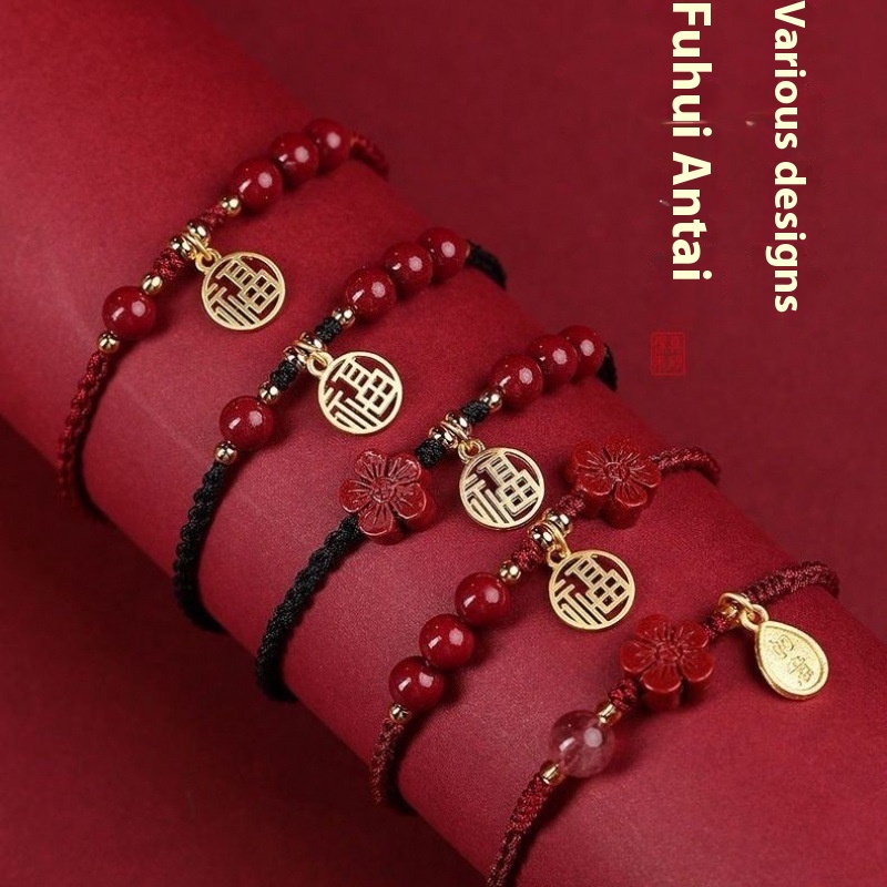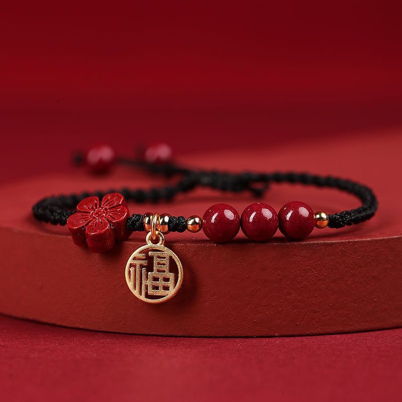Color: [wine red bracelet] round beads blessing card, [wine red bracelet] round beads five petal flower blessing card, [black rope bracelet] round beads blessing card, [black rope bracelet] round beads five petal flower blessing card, [red rope bracelet] round beads blessing card, [Red rope bracelet] round beads five petal flower blessing card