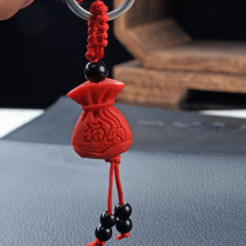 Size: Cinnabar Gourd Keychain, Cinnabar Money Bag Keychain, Cinnabar Pixiu Keychain, Cinnabar Cabbage Buddha