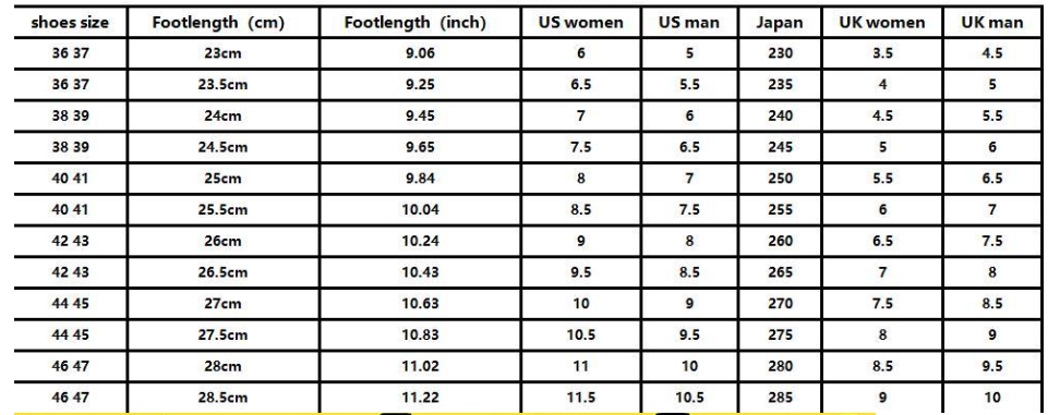 Shoe size: 36/37 [suitable for sizes 36 37] 38/39 [suitable for sizes 38 39] 40/41 [suitable for sizes 40 41] 42/43 [suitable for sizes 42 43] 44/45 [suitable for sizes 44 45]