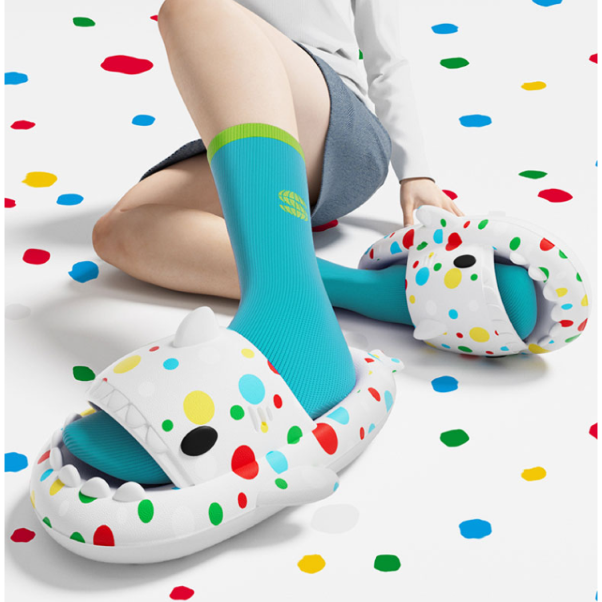 Circular Universe Wave Dot Shark Couple Slippers