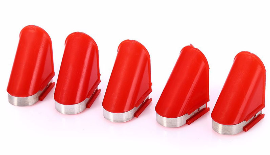 Three blades, one mounted on the machine and the other two mounted on the bottom of the base.