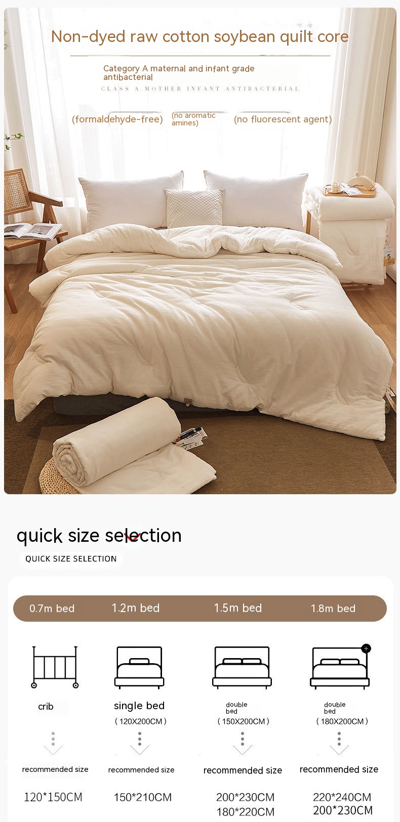 Dimensions: 150x200cm [2.2kg] summer quilt, 180x220cm [3kg] summer quilt, 200x230cm [3.4kg] summer quilt, 220x240cm [3.8kg] summer quilt, 120x150cm [2kg] Spring and Autumn quilt, 150x200cm [3.1kg] Spring and Autumn quilt, 180x220cm [3.8kg] Spring and Autumn quilt, 200x230cm [4.4kg] Spring and Autumn quilt, 220x240cm [5.6kg] Spring and Autumn quilt, 120x150cm [3kg] winter quilt, 150x200cm [4.6kg] winter quilt, 180x220cm [5.5kg] Winter quilt, 200 x 230cm [7kg] winter quilt, 220 x 240cm [8.4kg] winter quilt