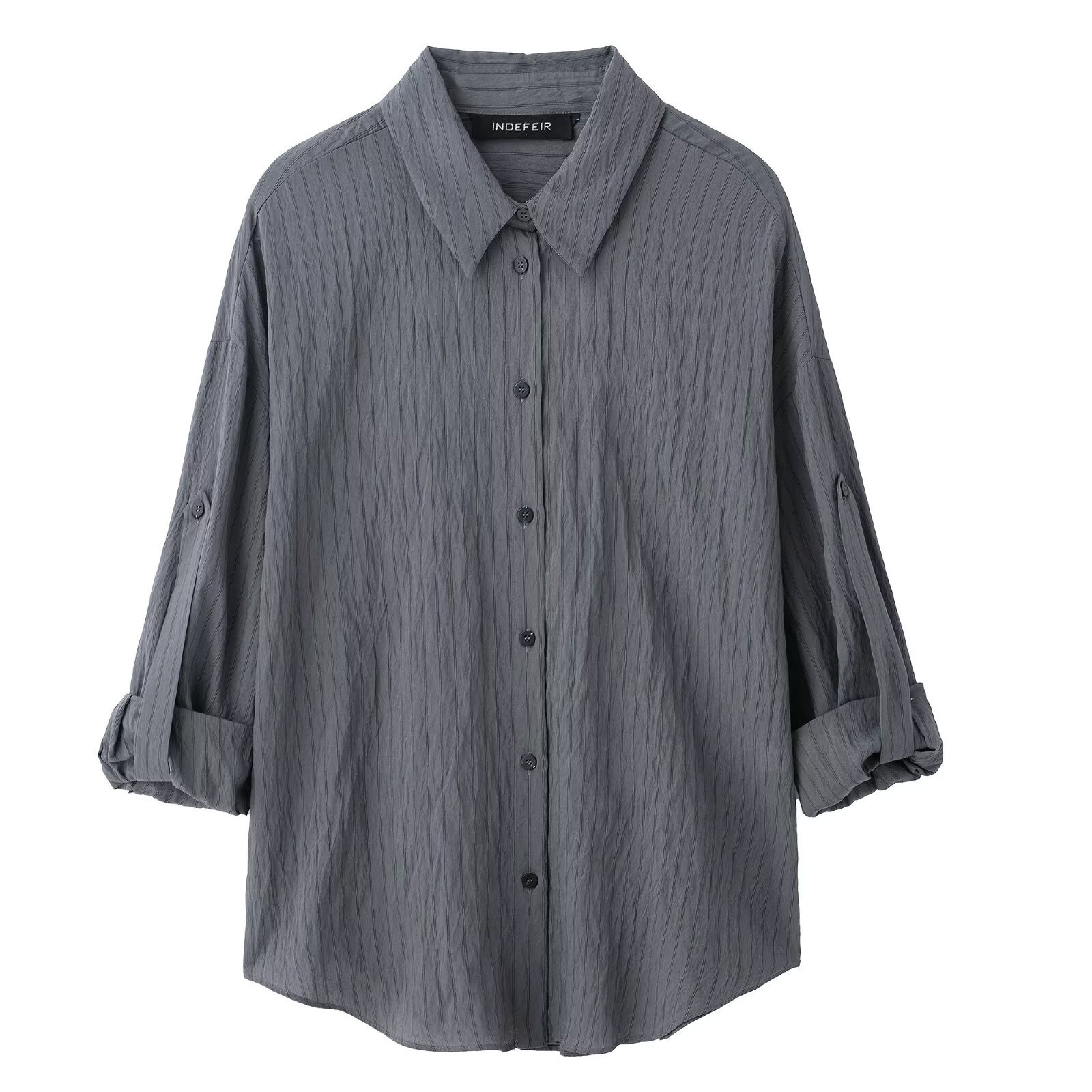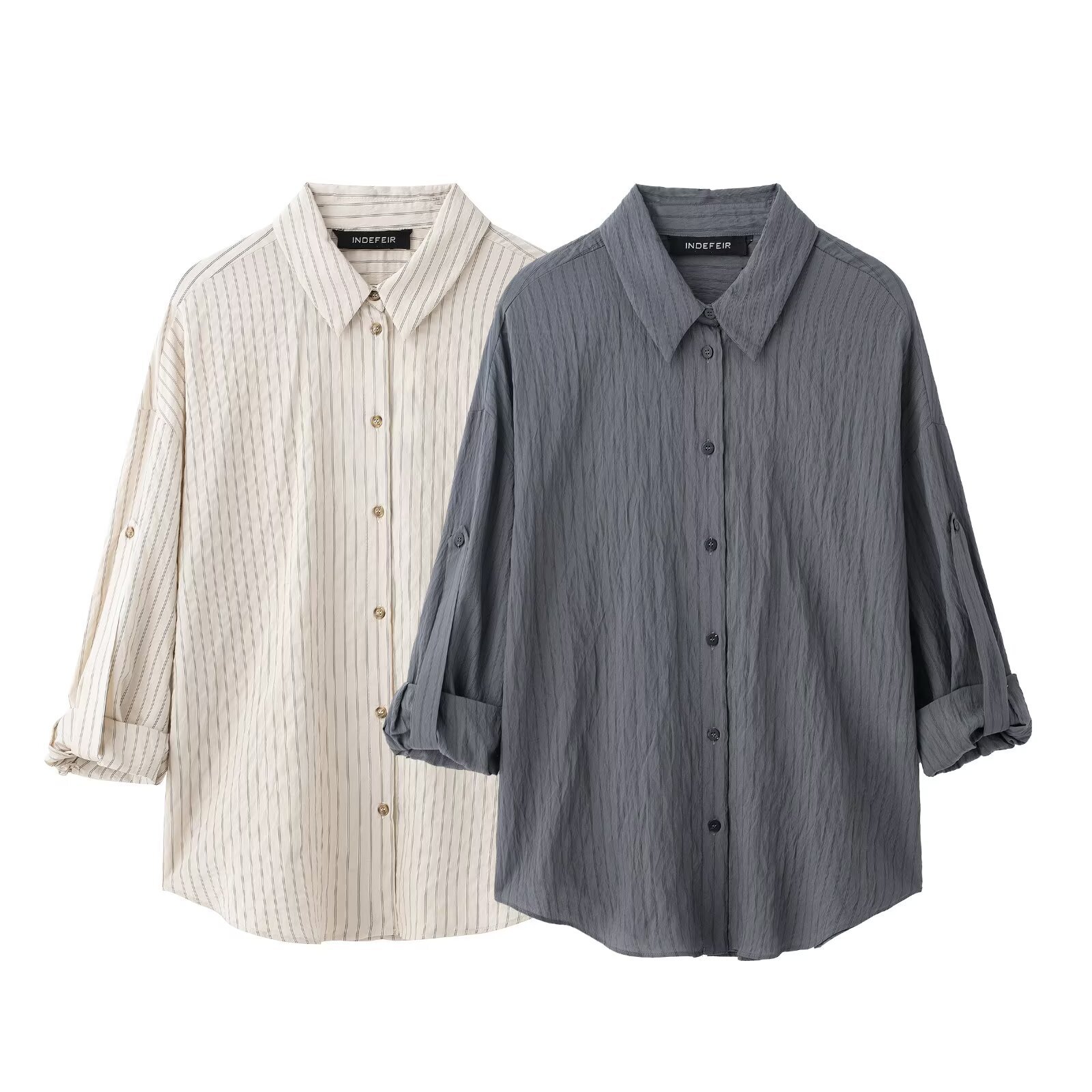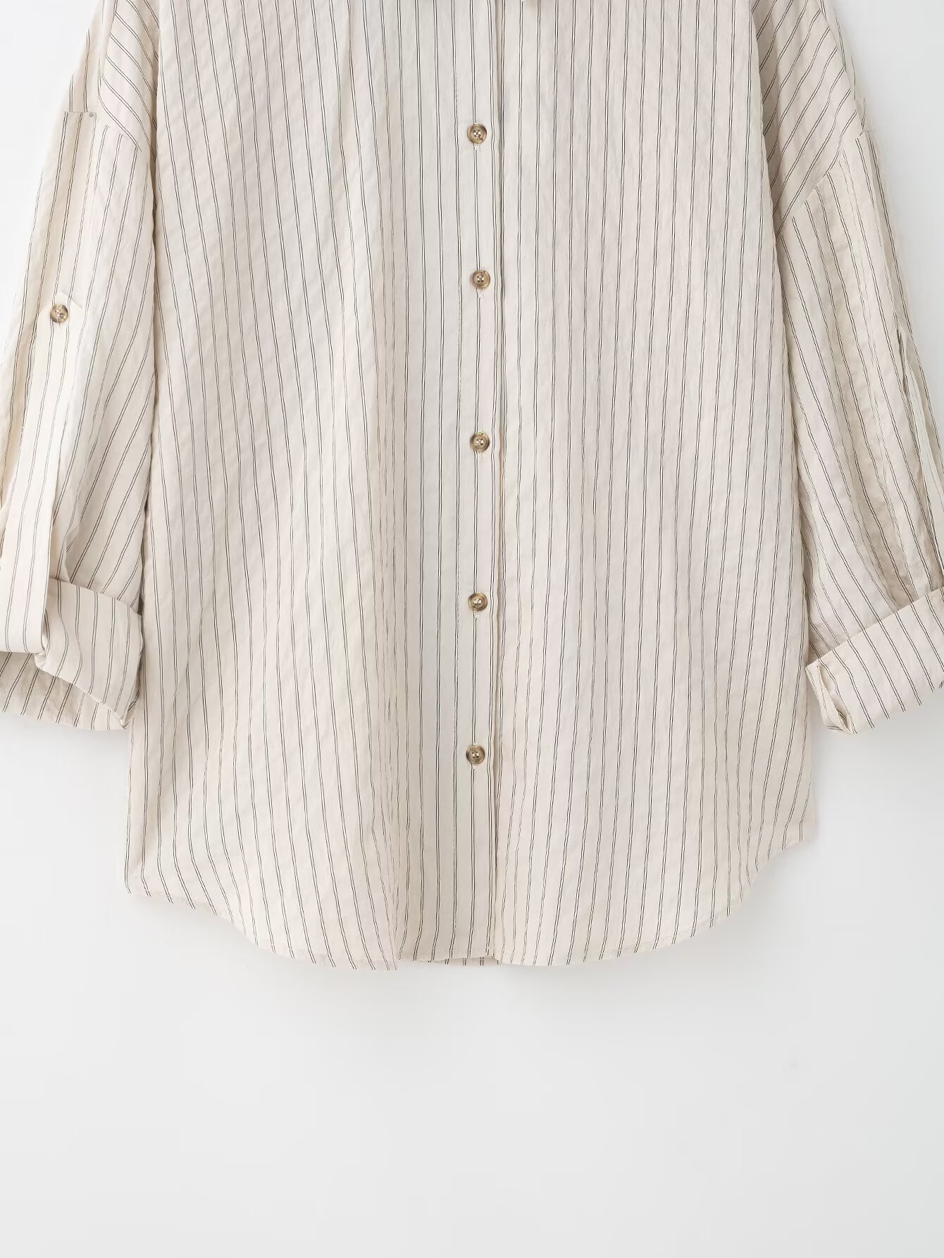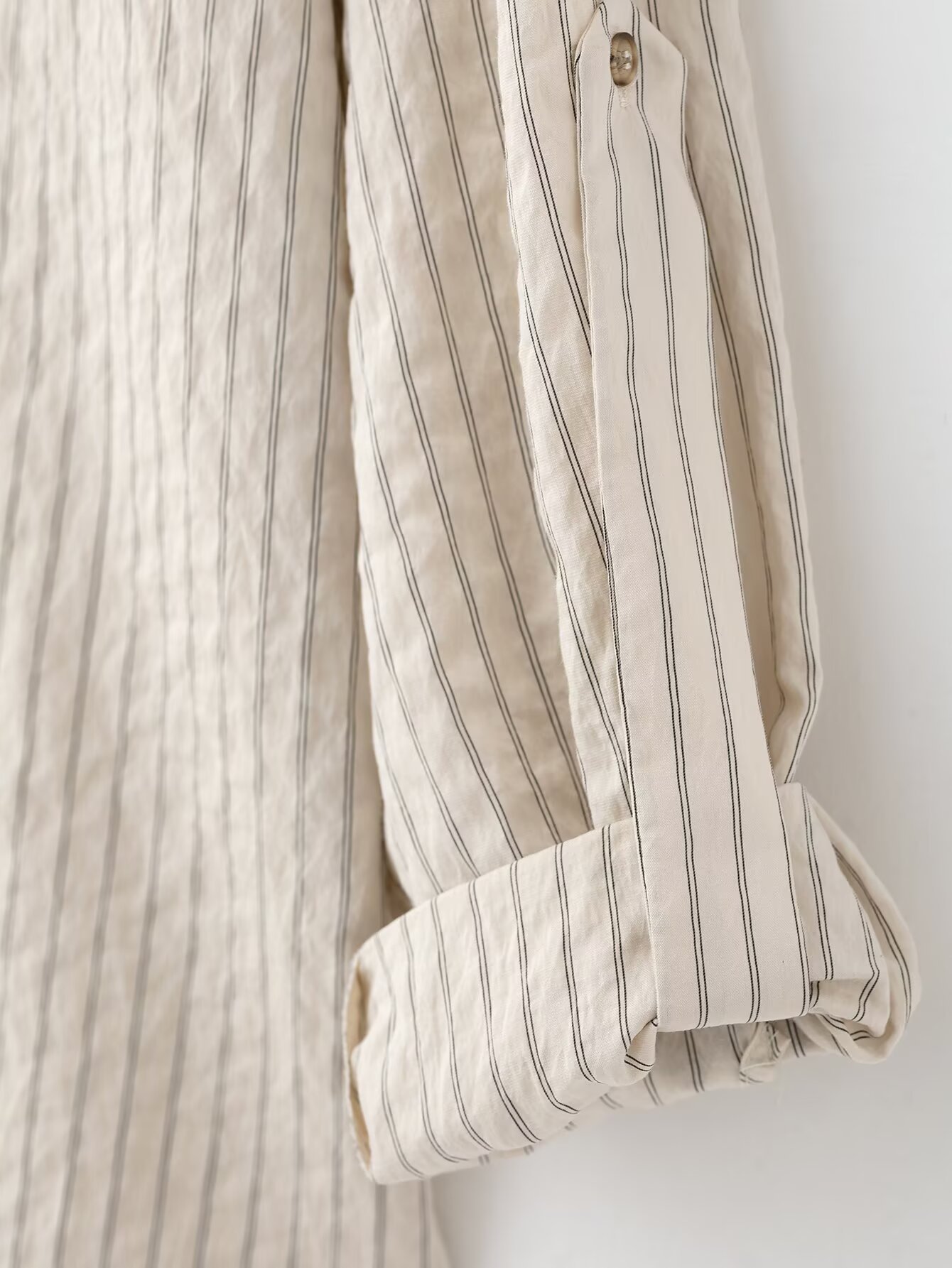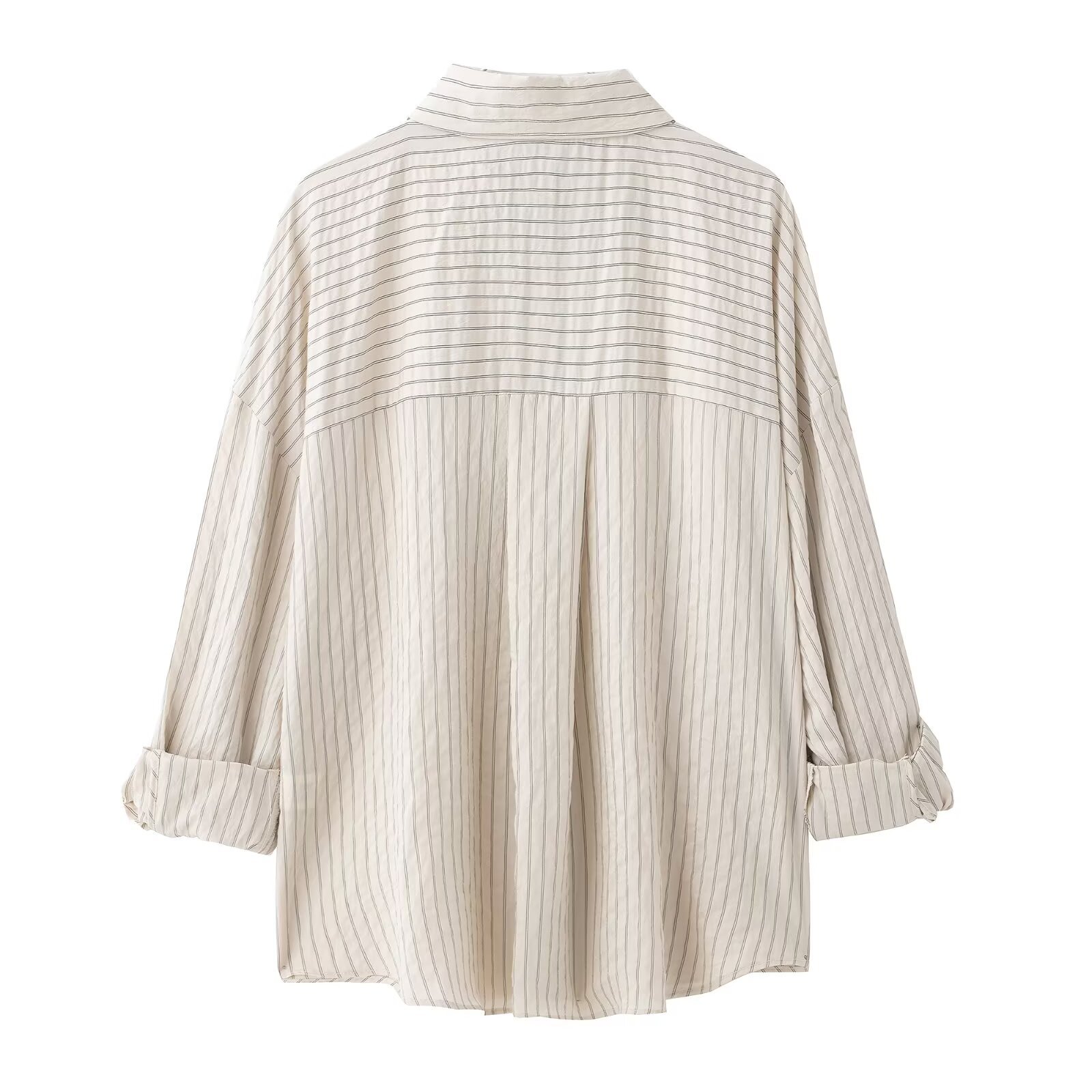 Classic Adjustable-Length Sleeve Striped Shirt For Women