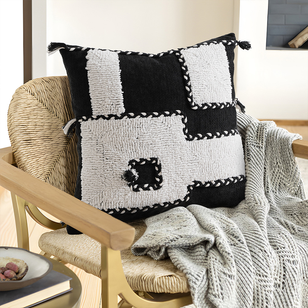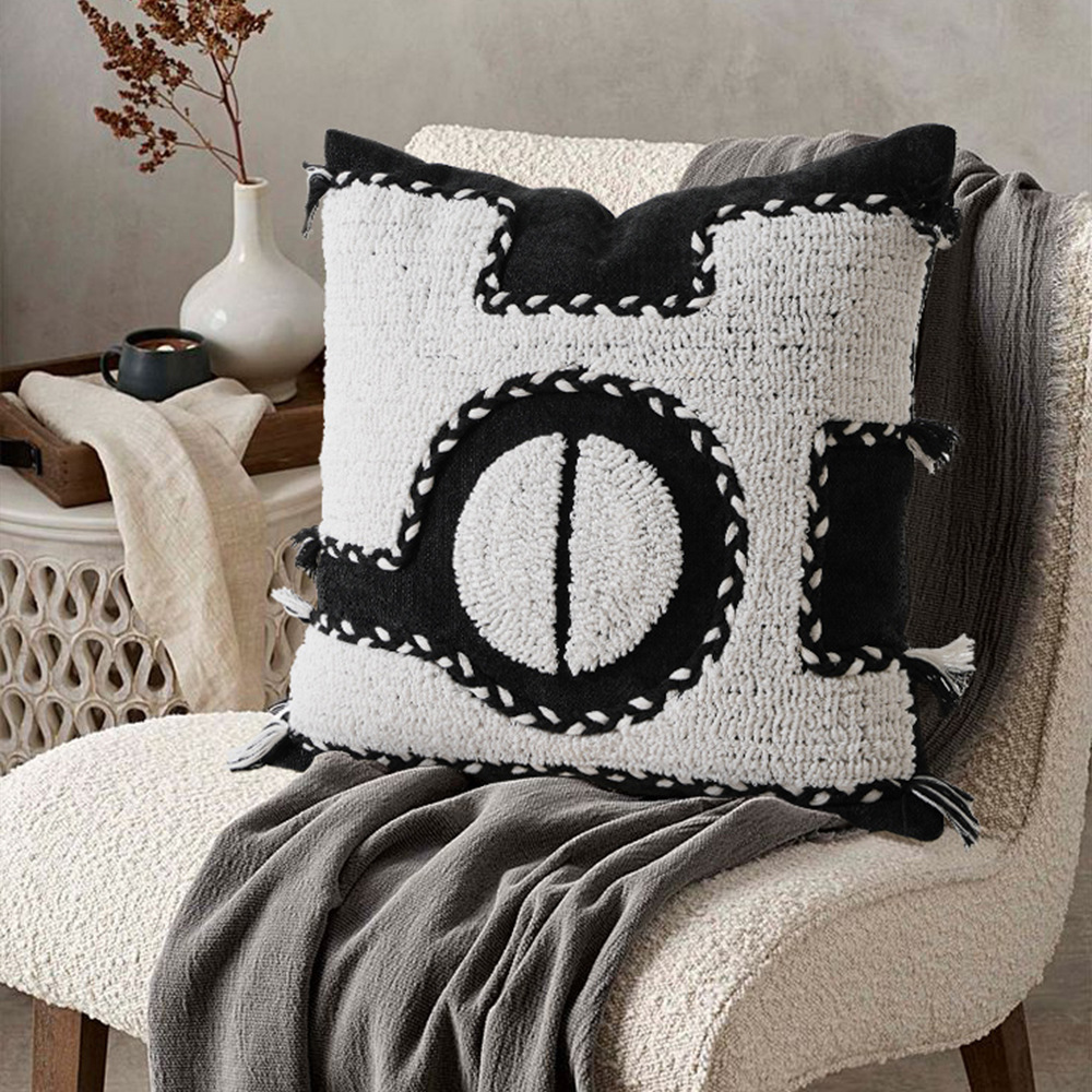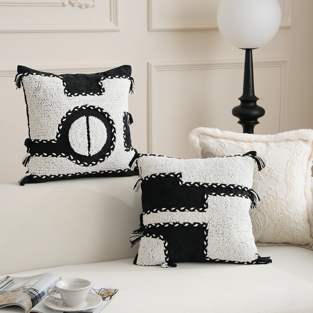 Color: Black and White siege chenille pigtail pillow cover-small square, black and white siege chenille pigtail pillow cover-circle, black and white siege chenille pigtail pillow cover-large square