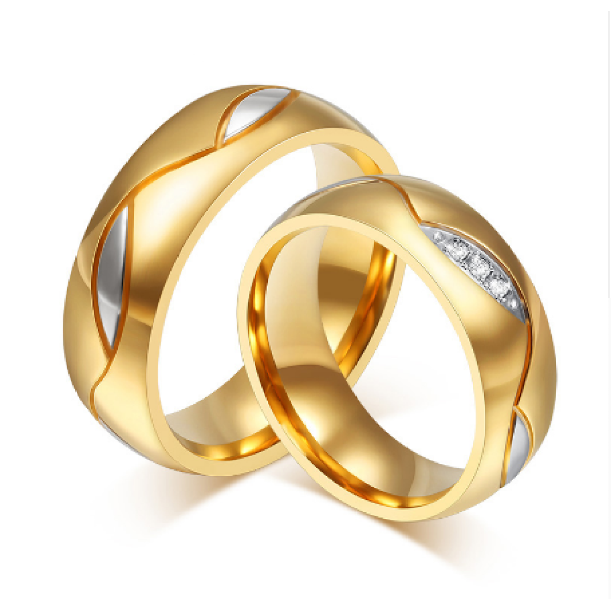 Classic Couple Rings For Lover's Cubic Zirconia Wedding Ring Gold-Color Stainless Steel Anel Jewelry