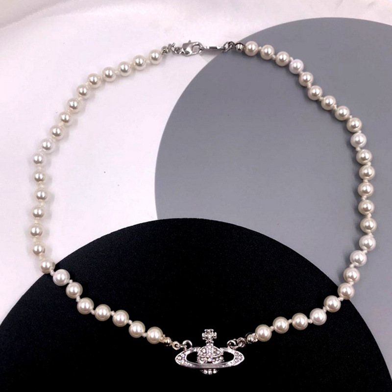 A: Silver Saturn necklace,