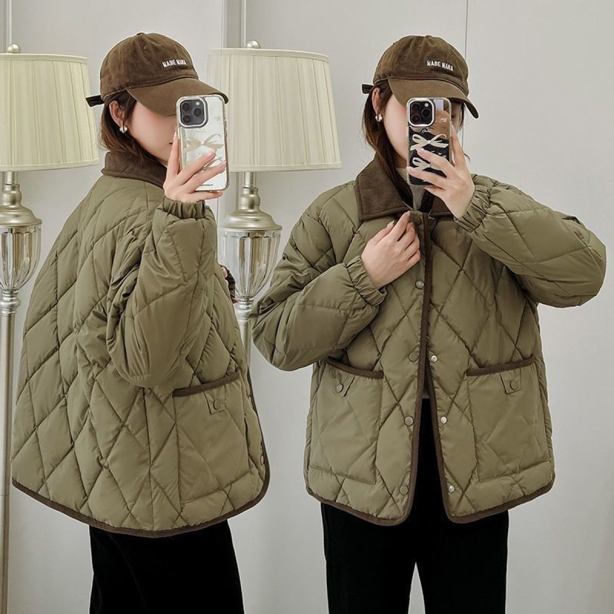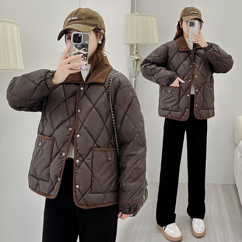 Classic Rhombus Cotton-padded Clothes Disposable PU Leather Loose Contrast Color And Versatile