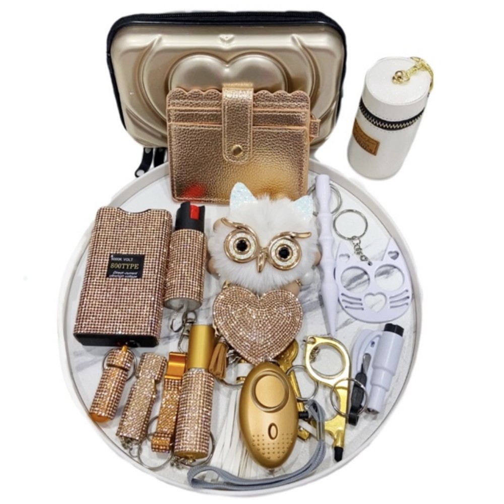 There are mini suitcase and keychain to carry.They are not only beautiful but it protects you in times of danger.