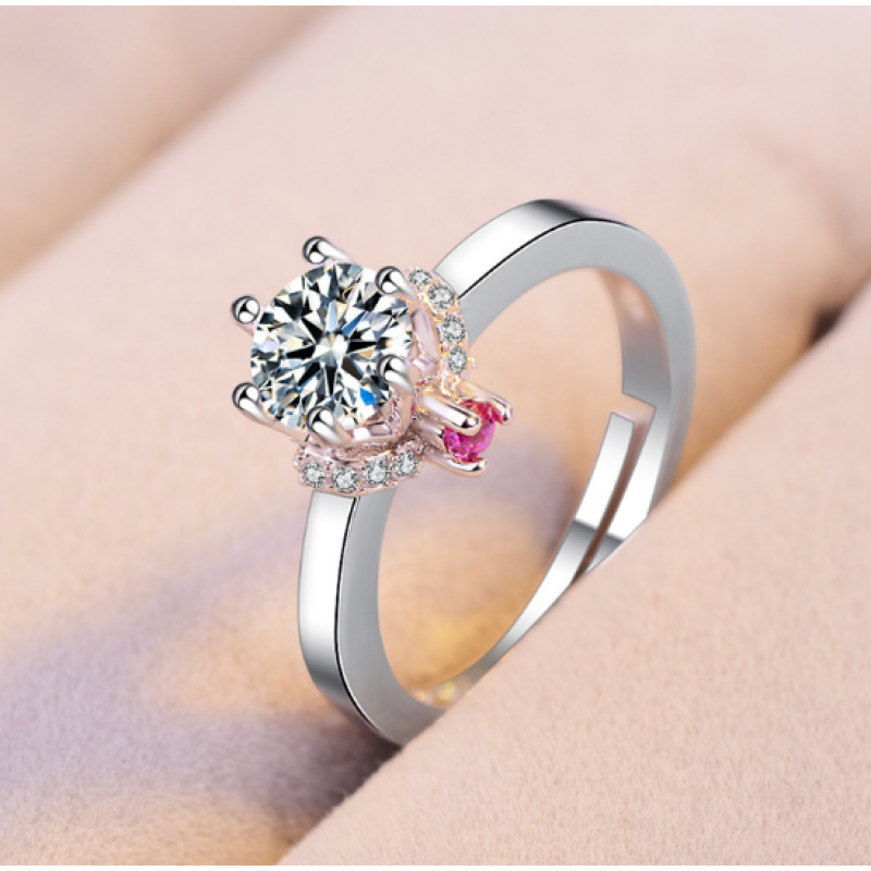 Classic six claw single diamond ring simulation plated 18k white goldring diamond engagement ring