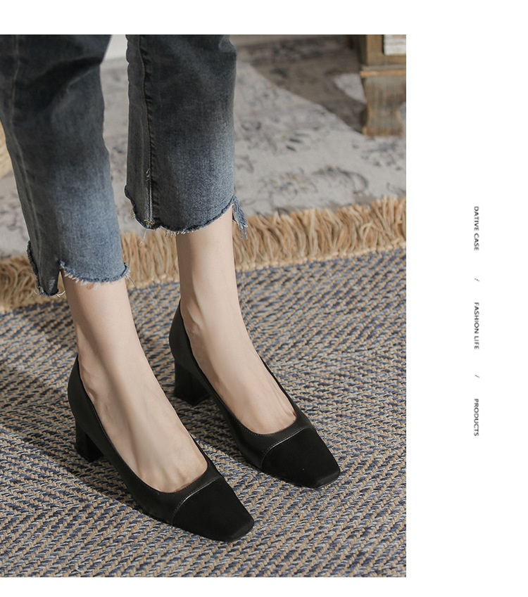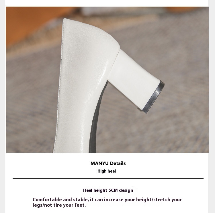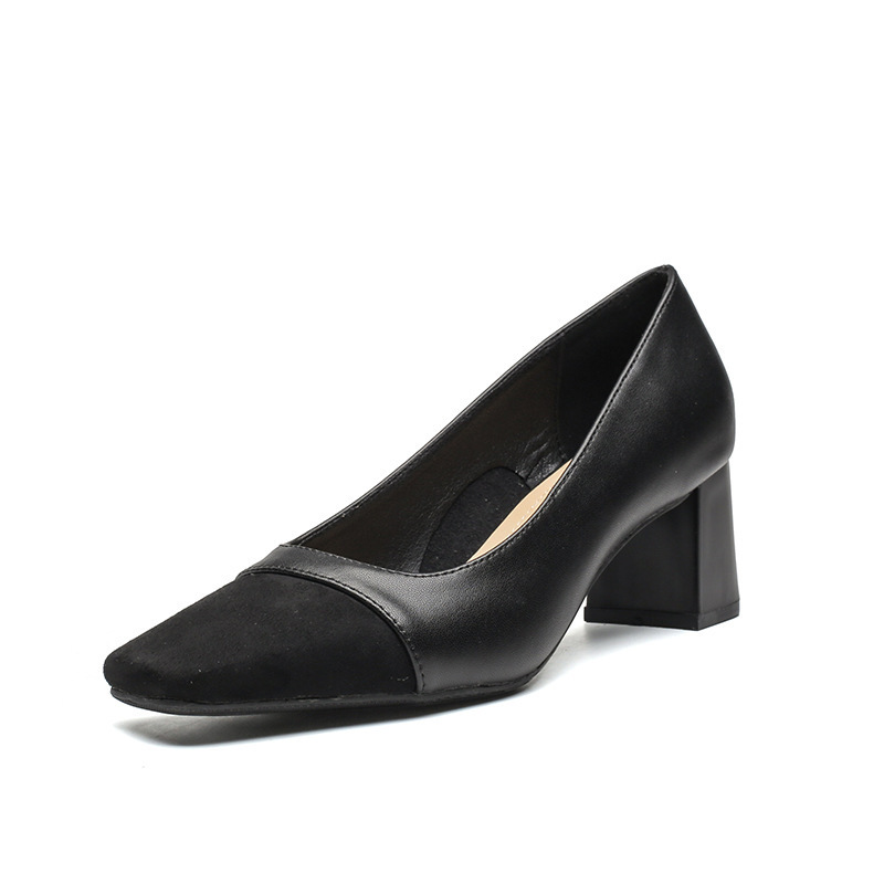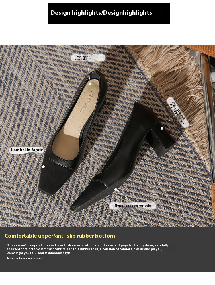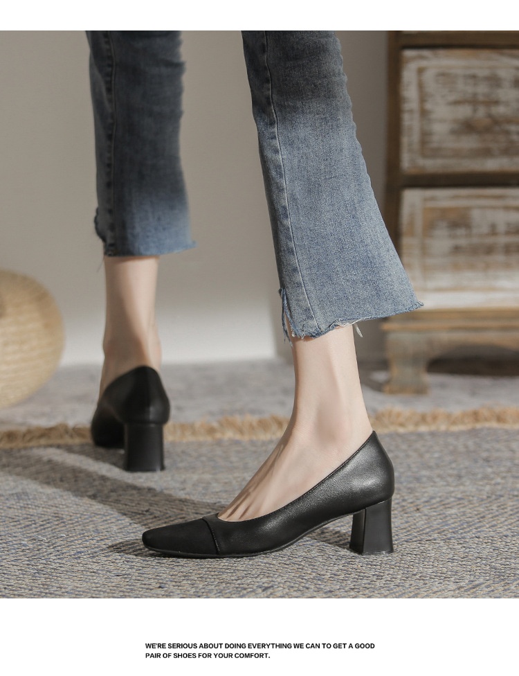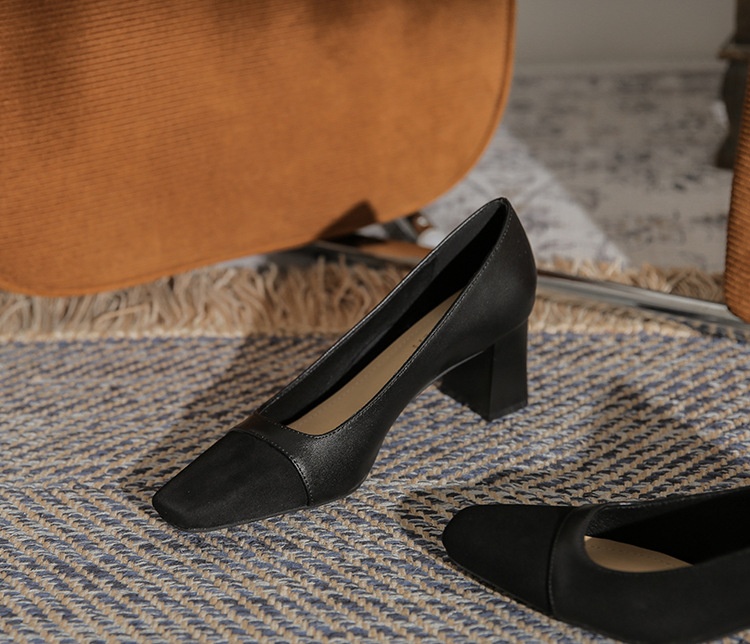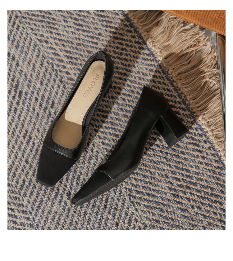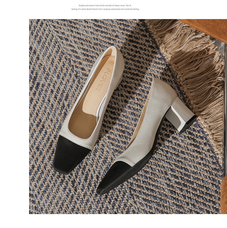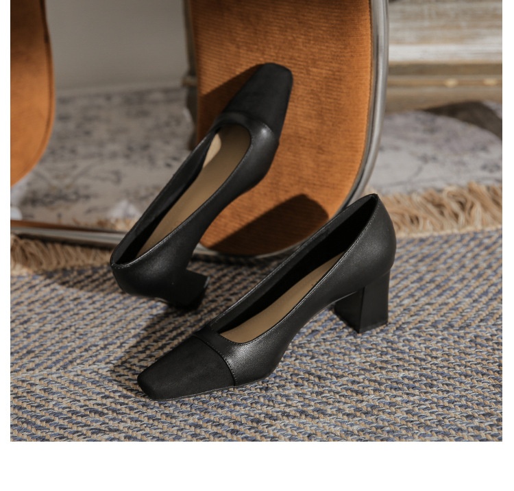 Classic Style Chunky Genuine Leather Pumps Temperament Color Matching Low-cut Mid Heel High Heels