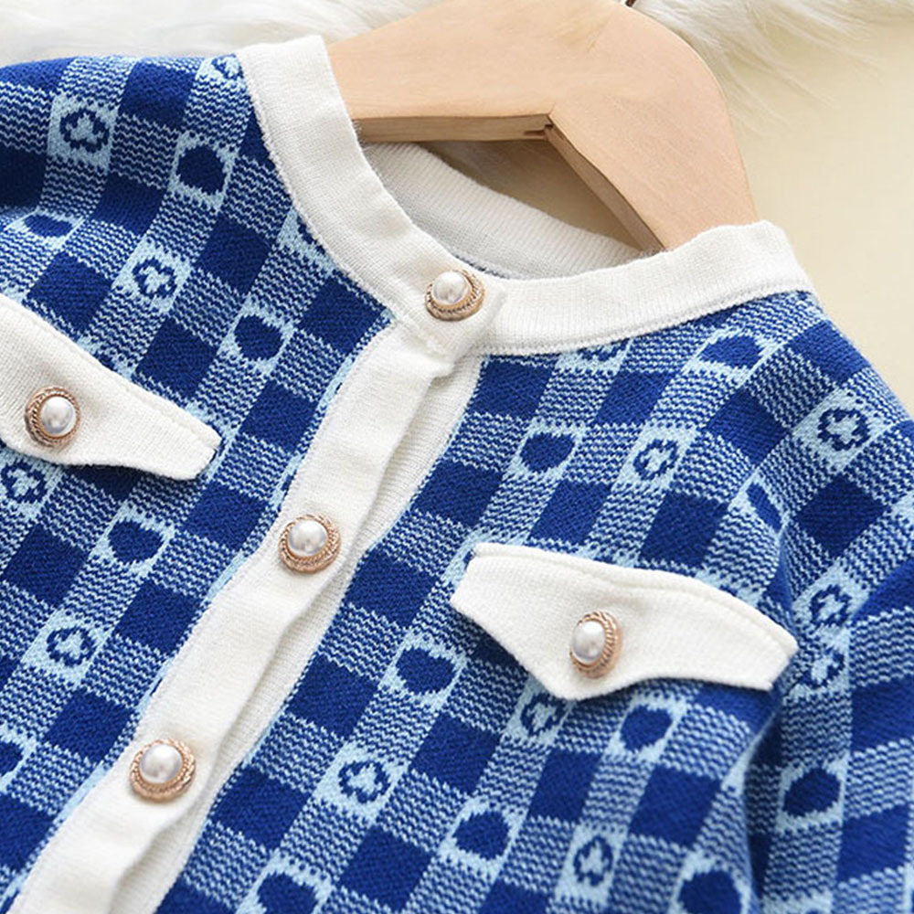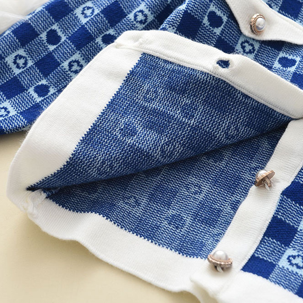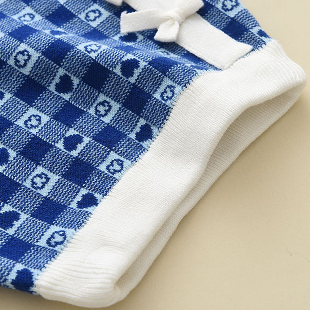 Classic Style Plaid Knitted Cardigan Bow Hip Skirt Two-piece Suit Girl Sweater