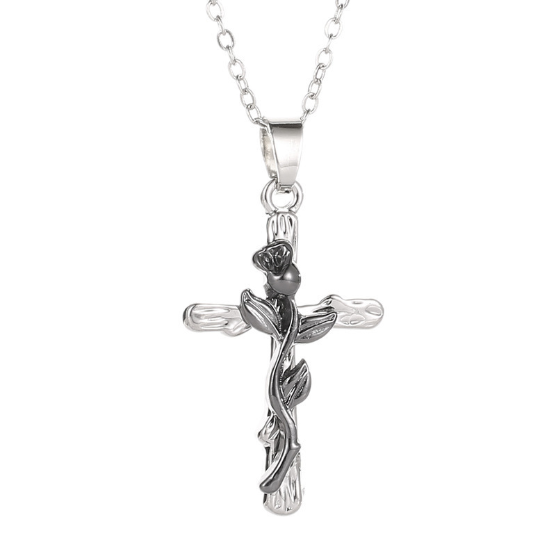 Classic Vintage Leaf Jesus Cross Necklace