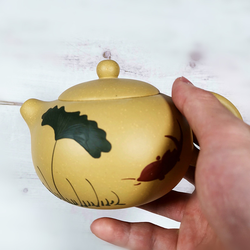 Style: A (hand-painted lotus leaf fish round teapot), B (glossy round teapot without pattern)