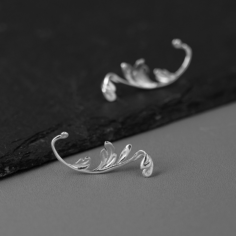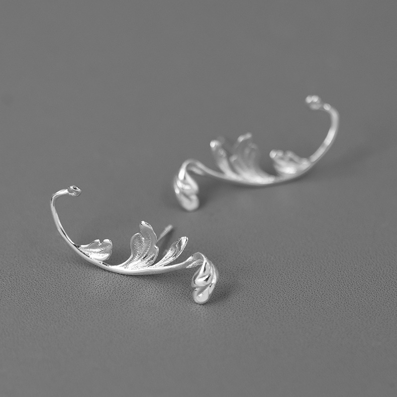 texture of material : silvertype : Ear Studsmodelling : leafpurity : 925 Silver