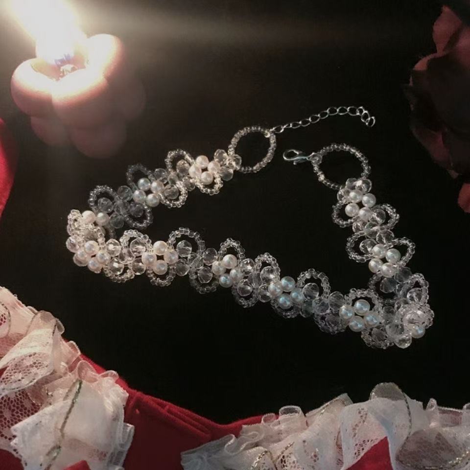 Color: Crystal Bead Rice-Character Necklace, Minimalist Style Necklace