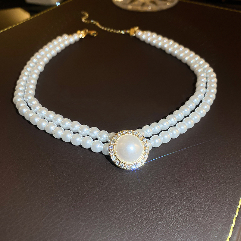 Product information:Color: ,20# necklace-White Pearl round double layer Pendant: Pearl Material: Imitation Pearl Shape: Geometry