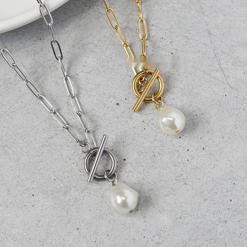 Clavicle-length Chain Pearl Pendant Necklace For Women