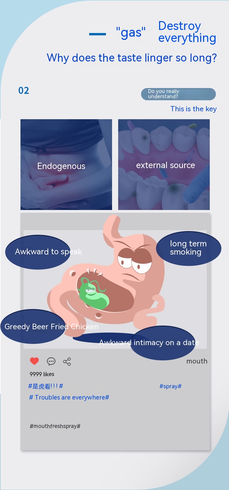 Function: clean oral cavity, bacteria, odor, fresh breath