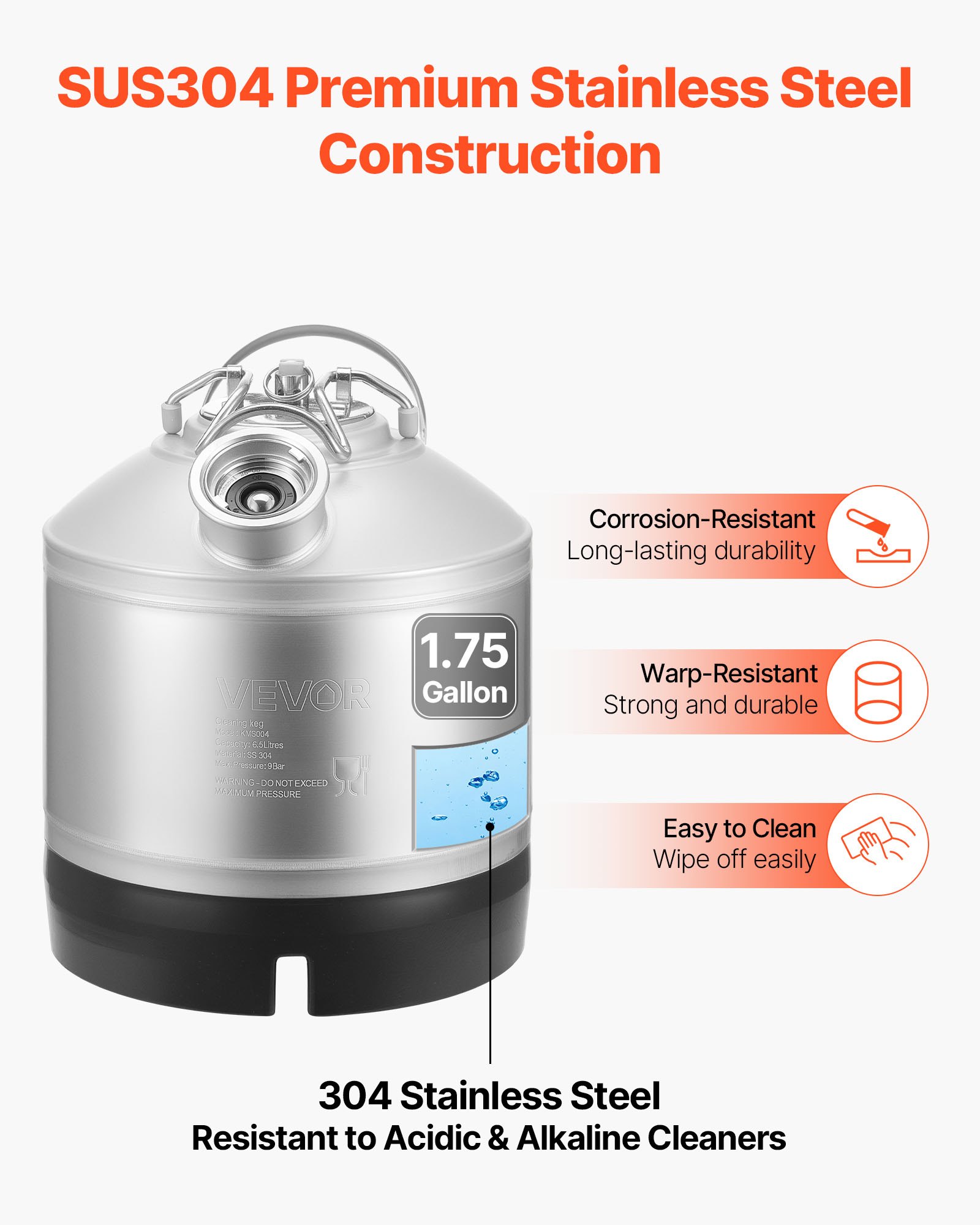 Long-Lasting Construction: Designed for repeated use, this 1.75-gallon / 6.5L keg line cleaning kit maintains strength and structure over time. It's engineered to avoid damage from pressure or handling, offering long-lasting performance in daily cleaning tasks