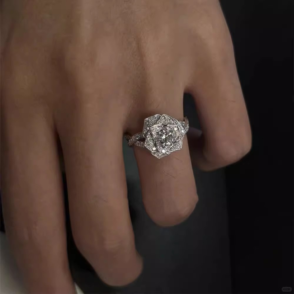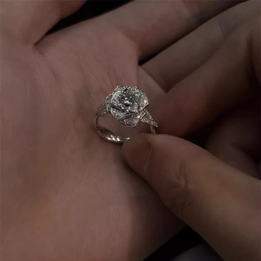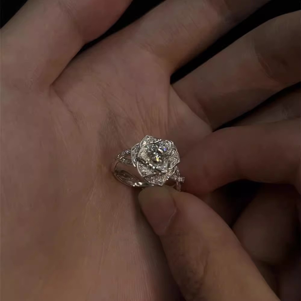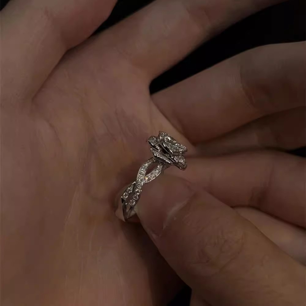 Clear And Cool Zircon Micro Inlaid Three-dimensional Rose Ring