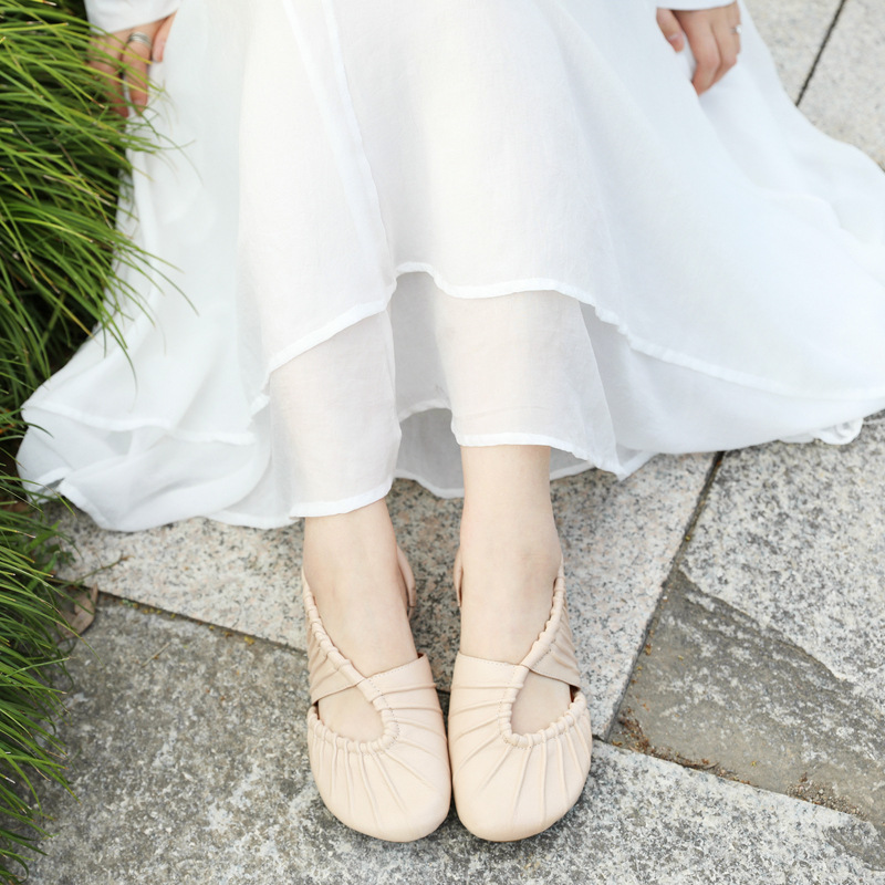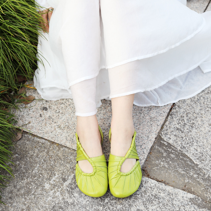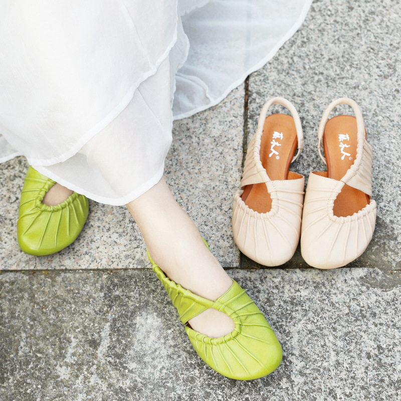 Closed Toe Flat Casual Women's Low Heel Leather Sandals