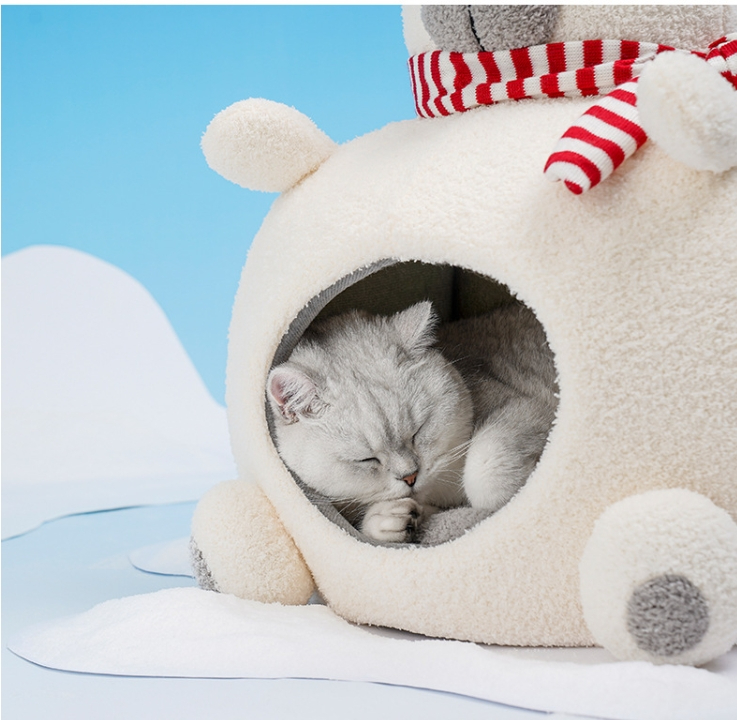 Product information:Specification: Bear sponge nest (white)Material: clothApplicable object: Cat Category: pet bed, Cage