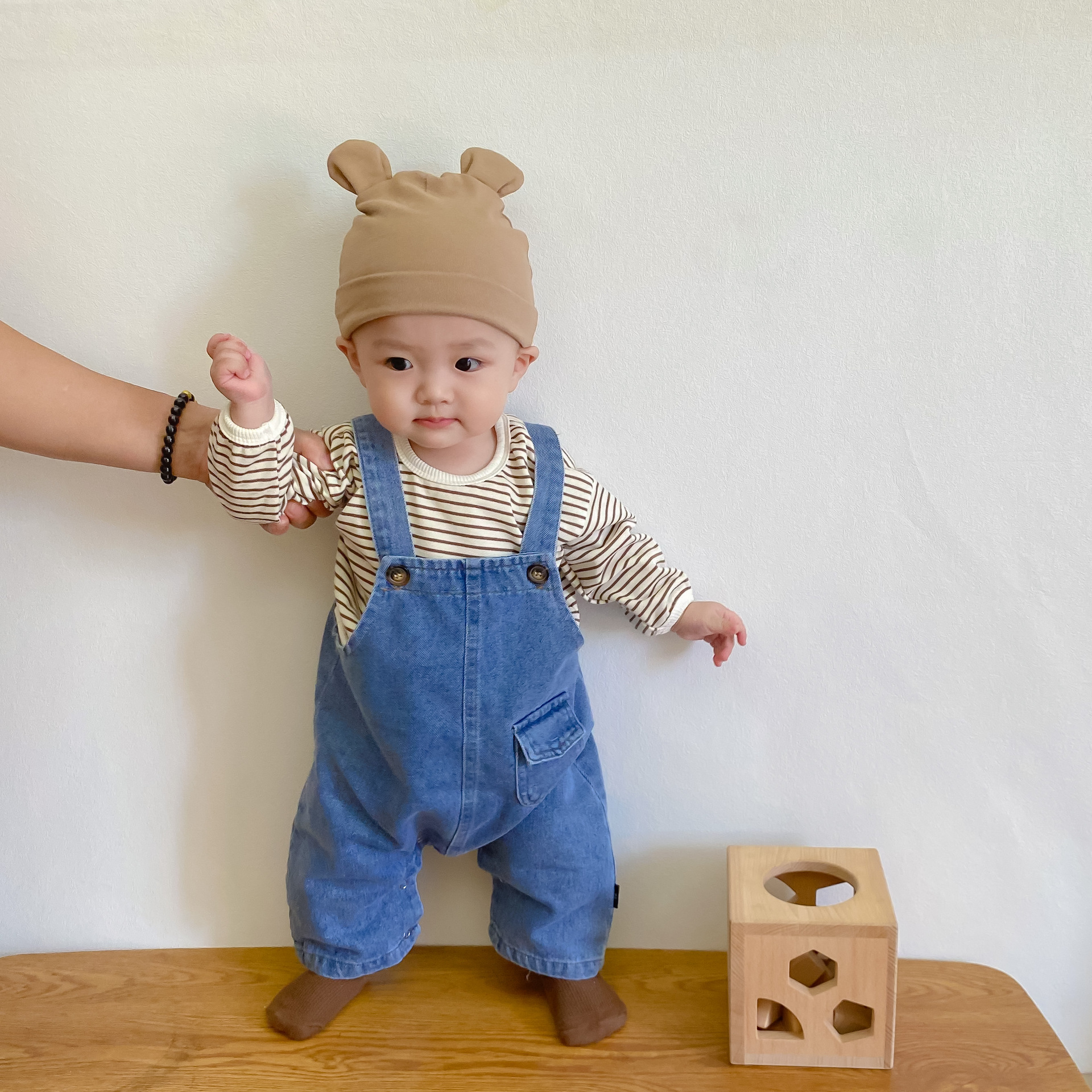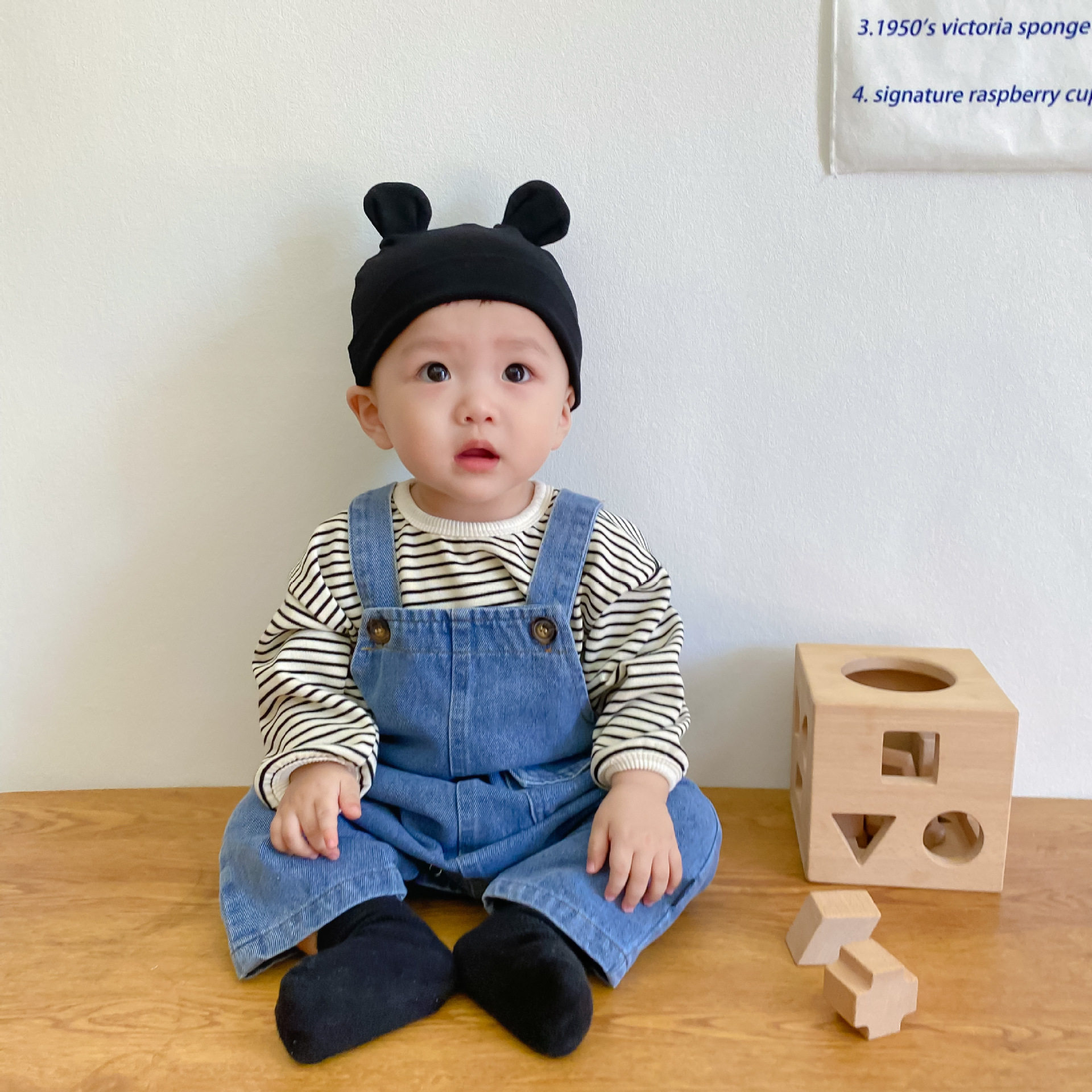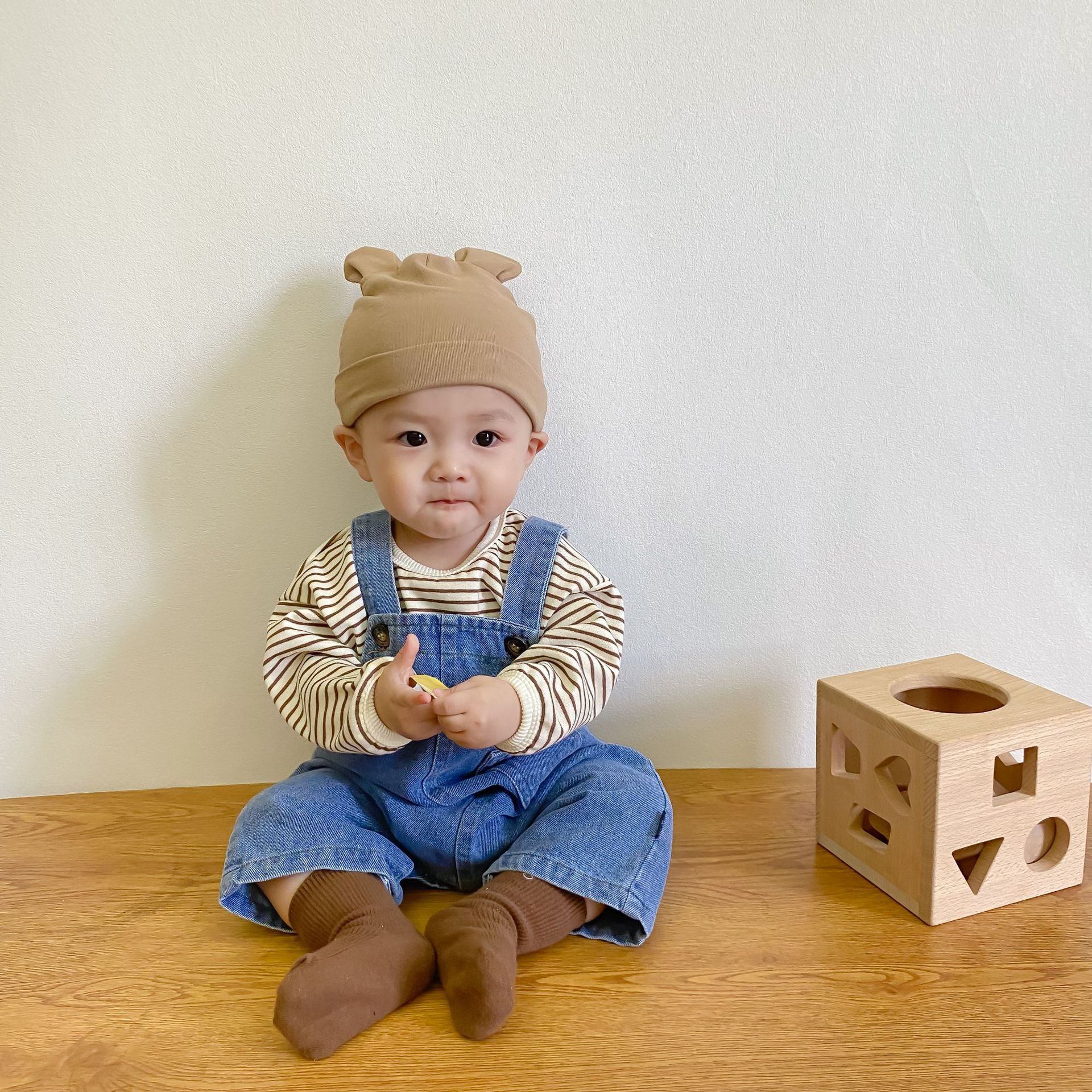 Color: Picture color suspender pants, black striped inner wear, coffee stripes inner wear
