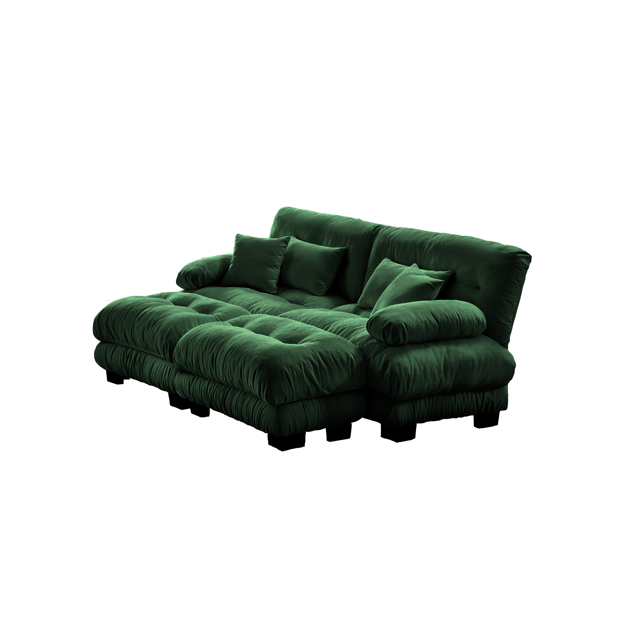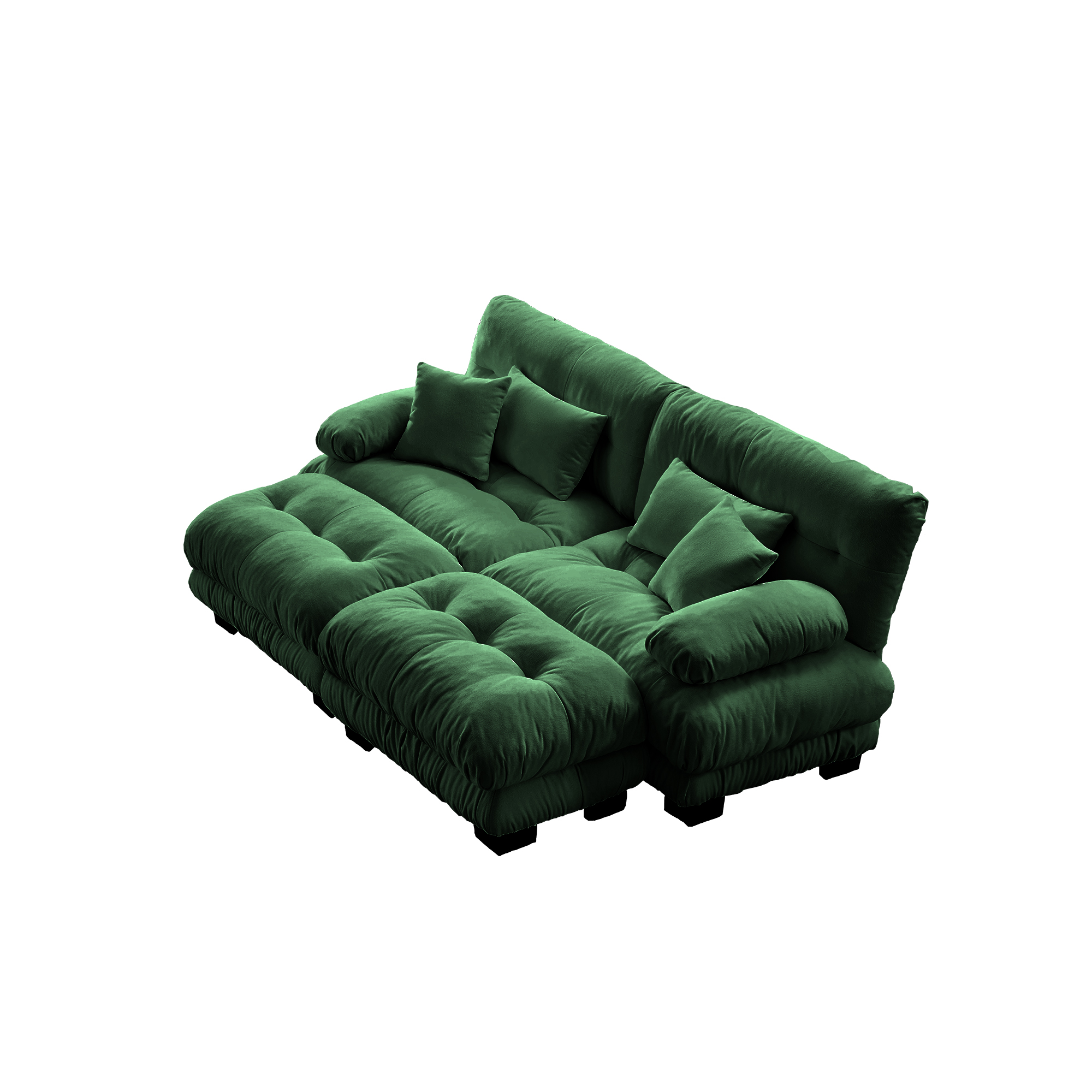 Product Name:Cloud Couch Sleeper Sofa for Living Room, Chenille 2 Seater sofa with 2 Lumbar pillows and 2 throw pillows , Upholstered Wide Arm Sofa with 2 Ottomans,Chenille Green