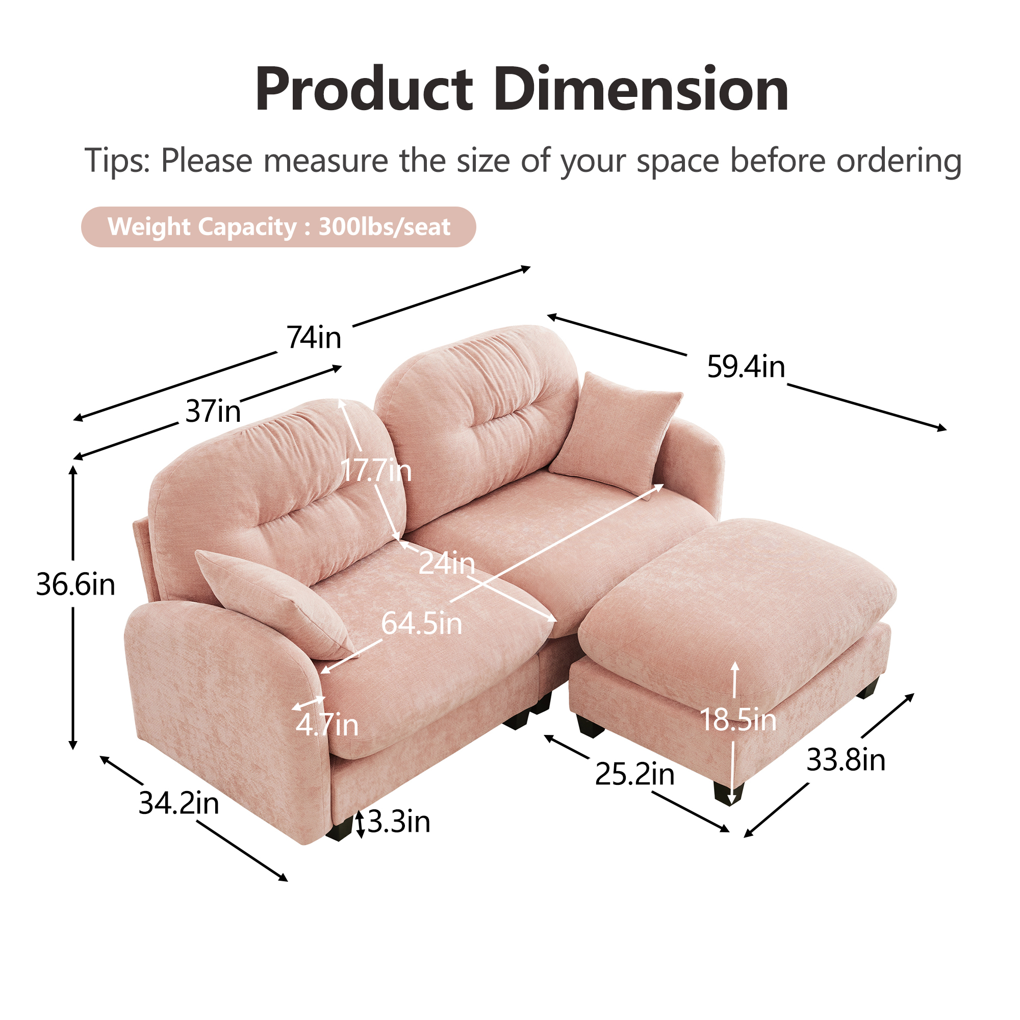 Product Name:Cloud Sectional L-Shaped Couch With Ottoman,Soft Chenille Fabric,Quilted Pleated Design High-Density Foam,Fits Bedrooms Living Rooms Reading Nooks,Pink