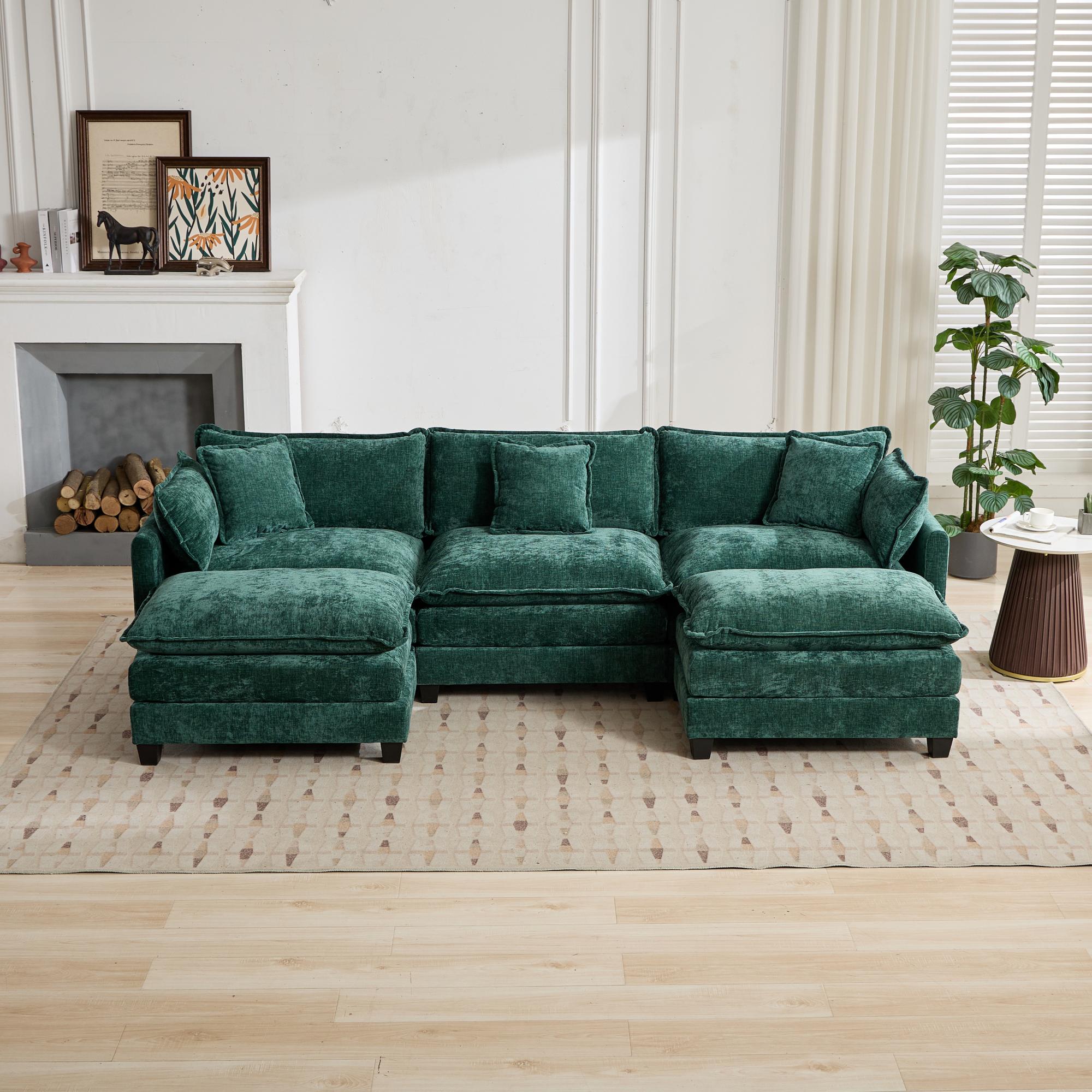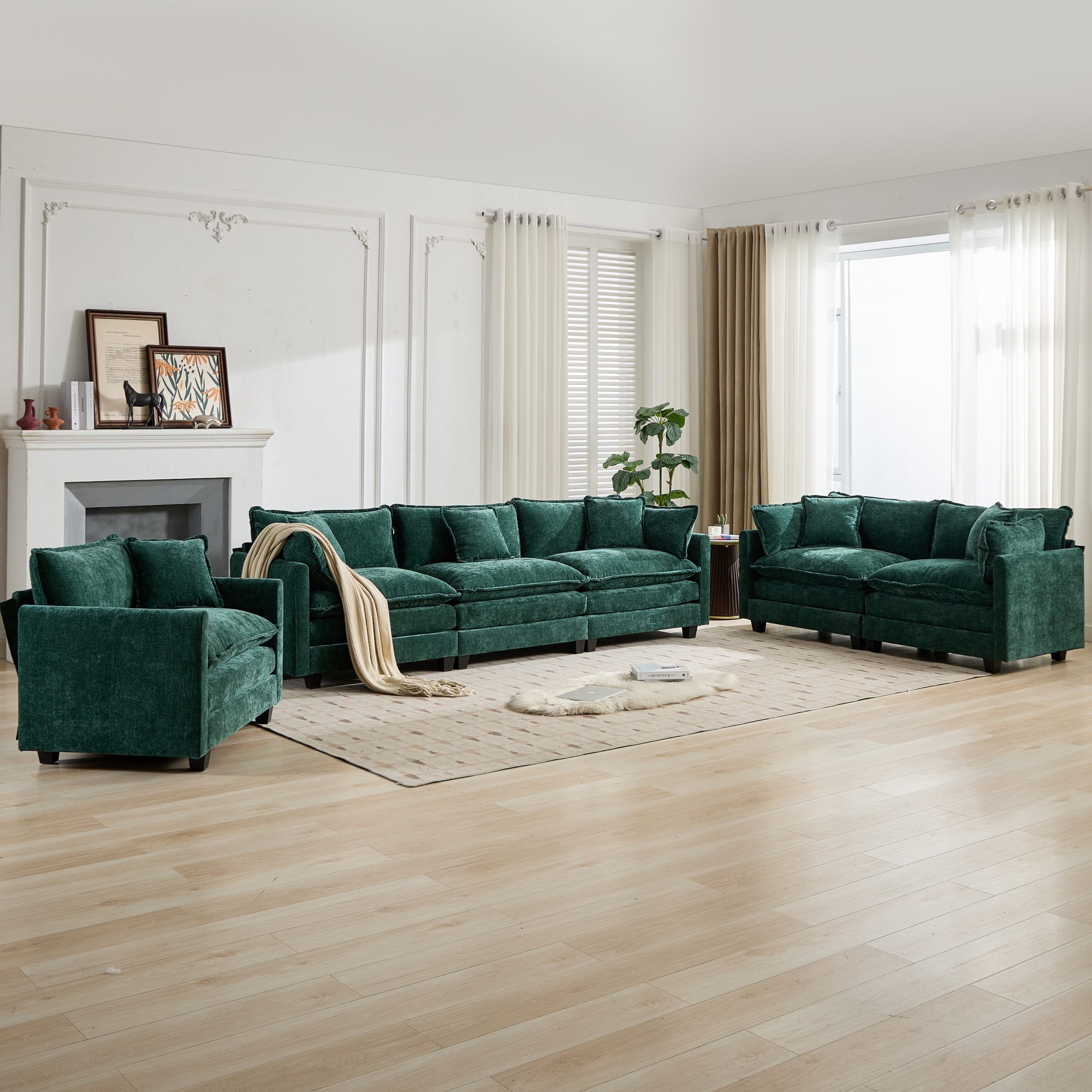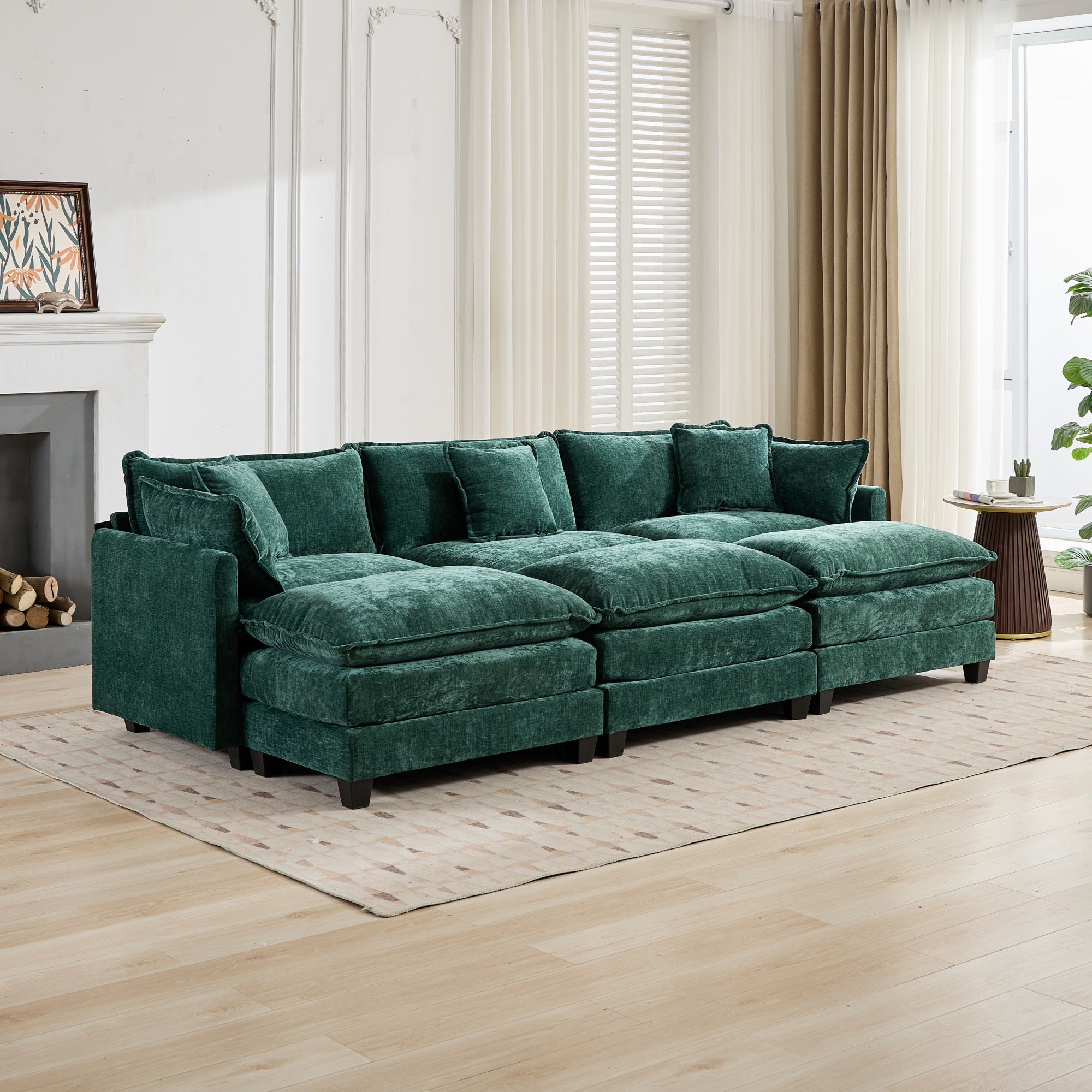Product Name:Cloud Sofa 3 Seats (Ottoman is not included), Modern Sectional Couch, for Living Room Bedroom and Apartment, Comfy Double Layer Upholstered Seat Cushion, Breathable Chenille Fabric,Green,SW5013GN