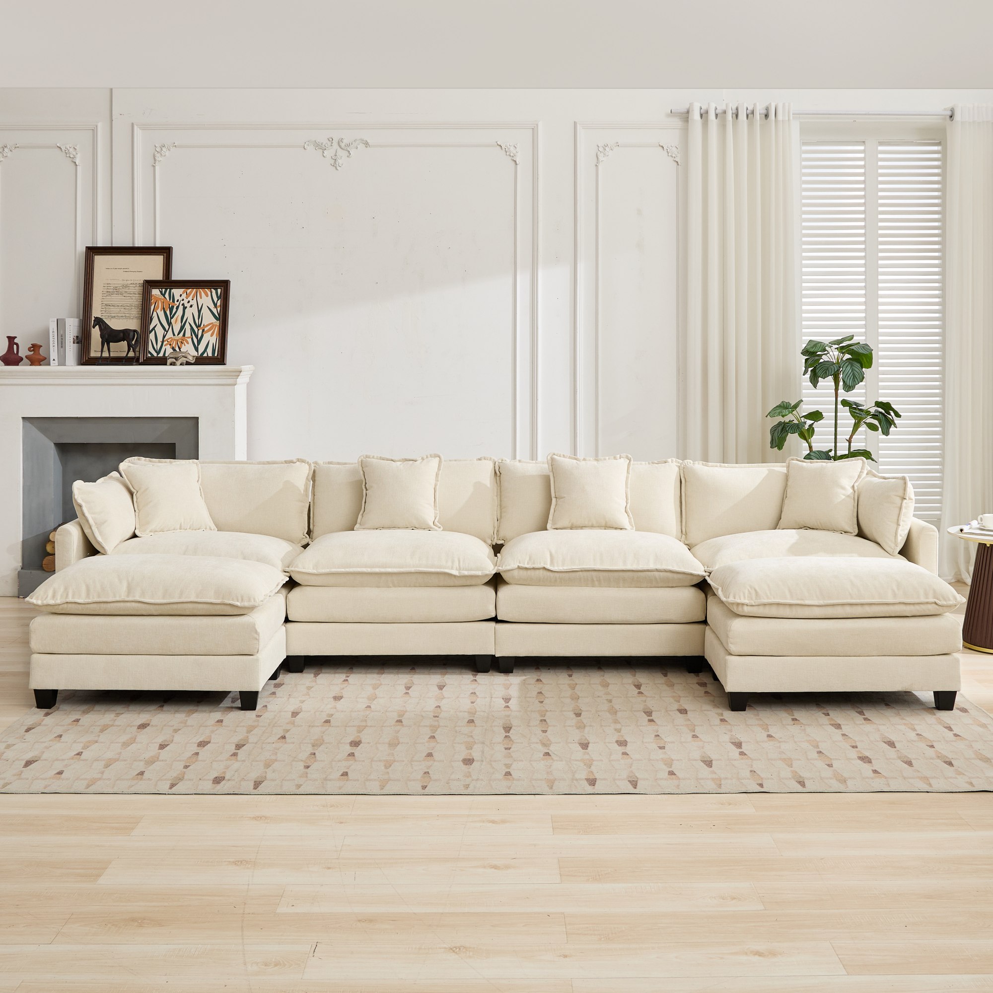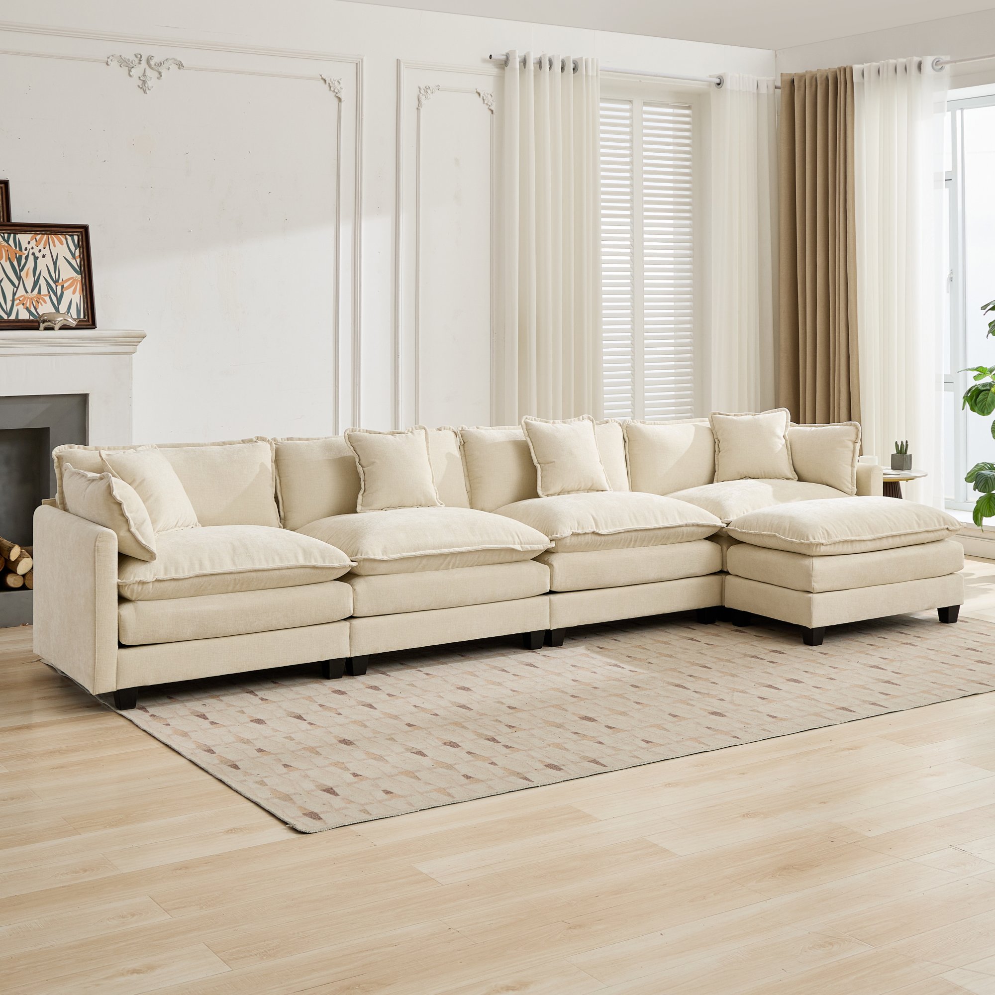 Product Name:Cloud Sofa 4 Seats (Ottoman is not included), Modern Sectional Couch, for Living Room Bedroom and Apartment, Comfy Double Layer Upholstered Seat Cushion, Breathable Chenille Fabric, Beige,SW5014BG