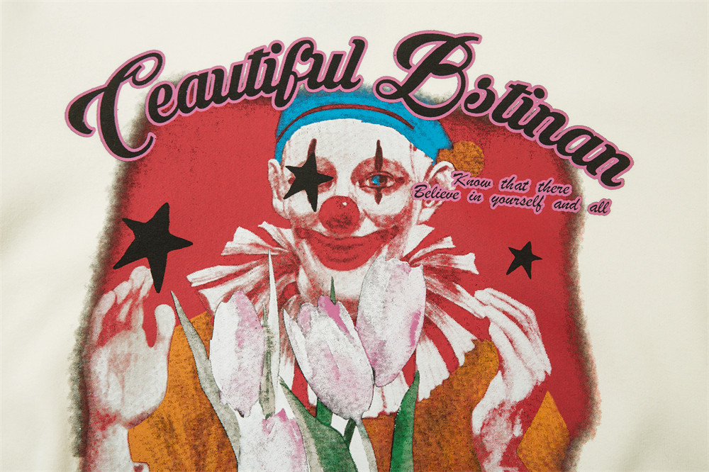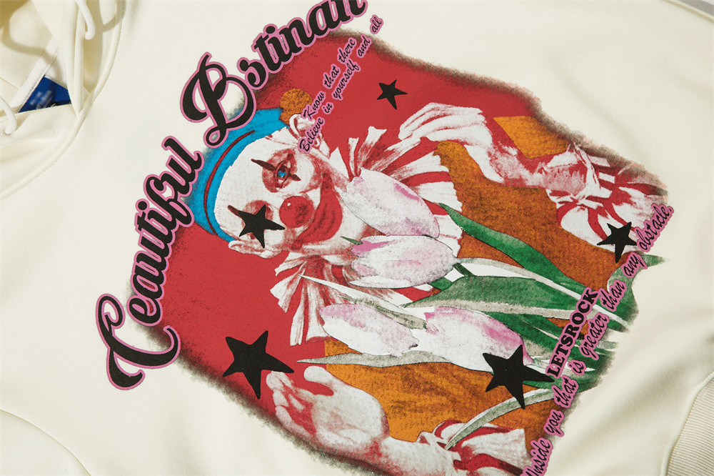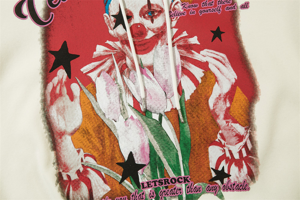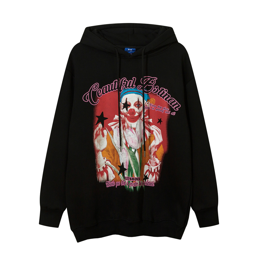 Clown Printed Hooded Velvet Padded Sweater Trendy Men's Long Sleeve Loose Casual Top