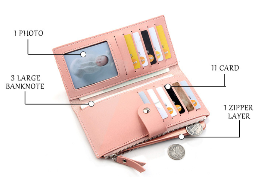 The internal structure of the small bag: key position, photo position, zipper compartment, banknote holder, card position, secret compartment, passport position, change position, document position, check position, passbook position