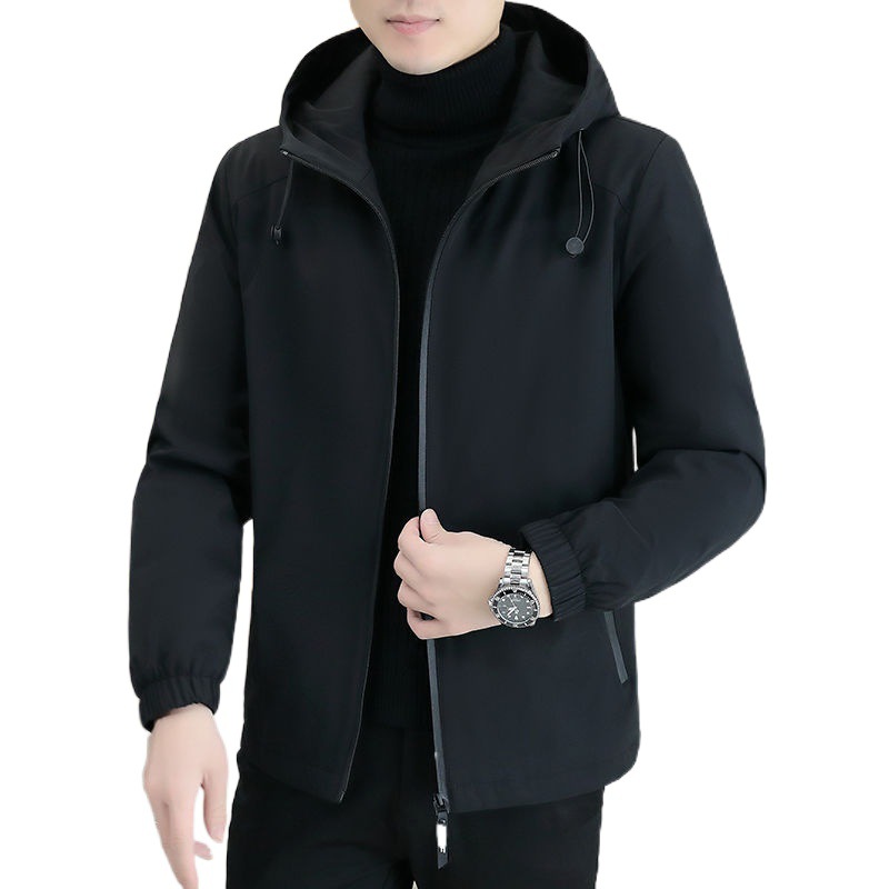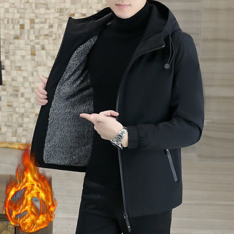 Coat Men's Autumn And Winter New Hooded Fleece-lined Thickened Solid Color Men's Jacket