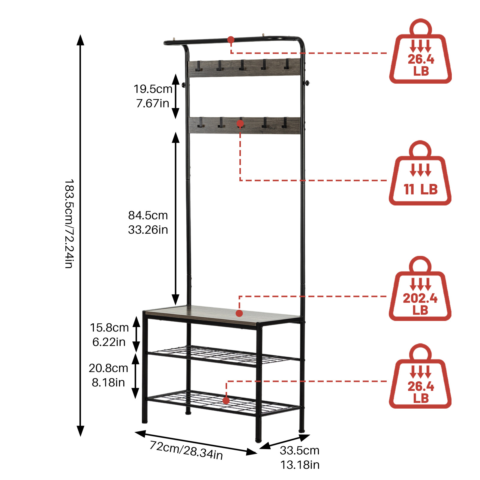 | Length × Width × Height | 28.35 × 13.27 × 72.05 inch |