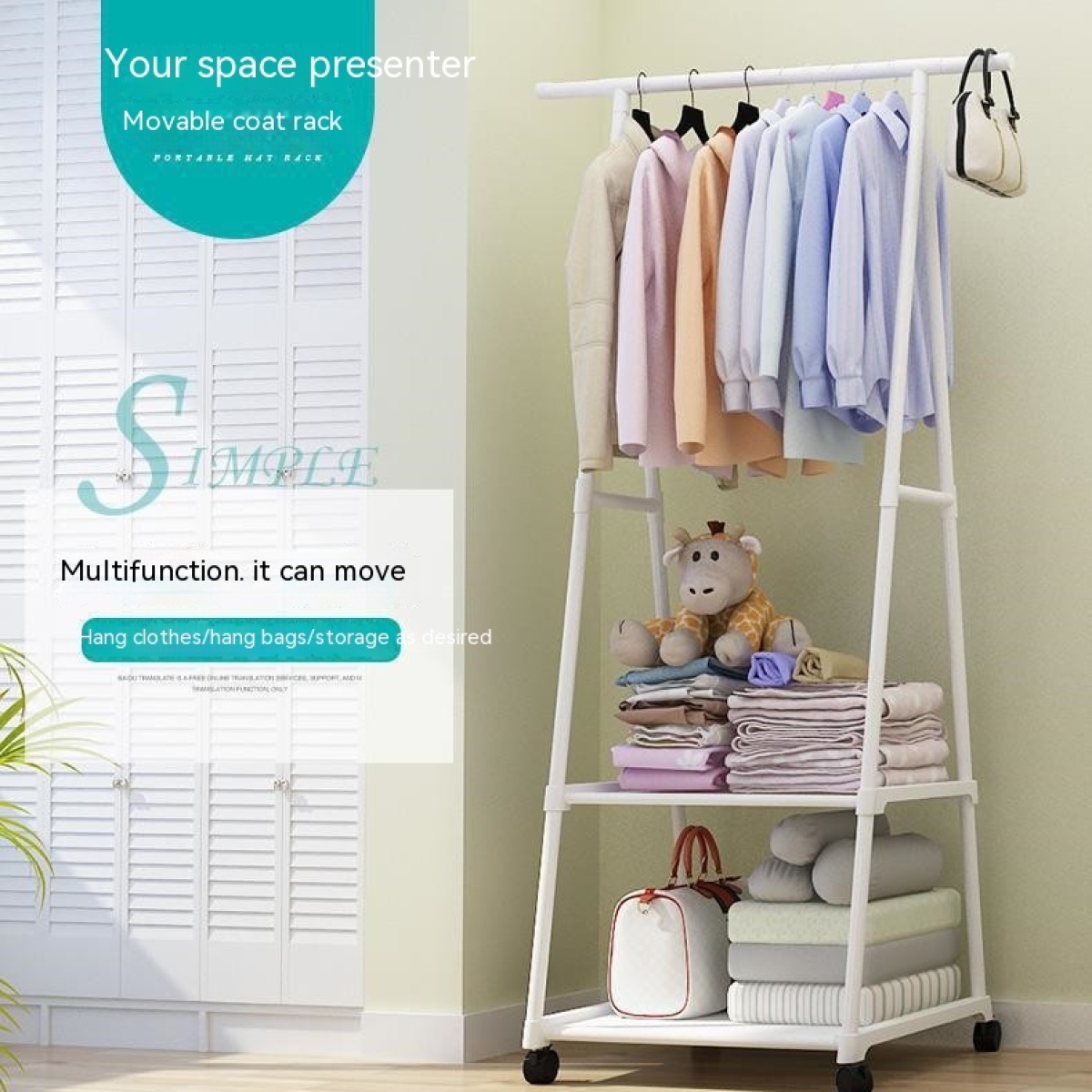 Coat Rack Triangle Coat Rack Floor Wheeled Mobile Multi-layer Storage Rack