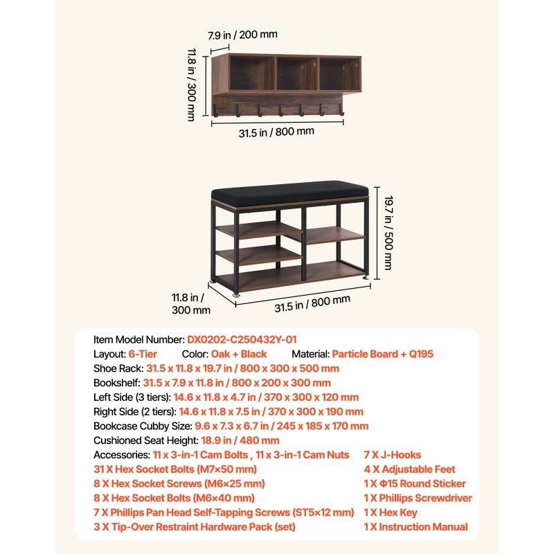 Comfortable Shoe Changing: Thecoat rack with shoe bench supports easy shoe changes, while 3 low shoe racks and 2 tall shoe racks keep sneakers, everyday shoes, and boots neatly stored and accessible
