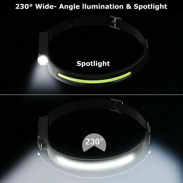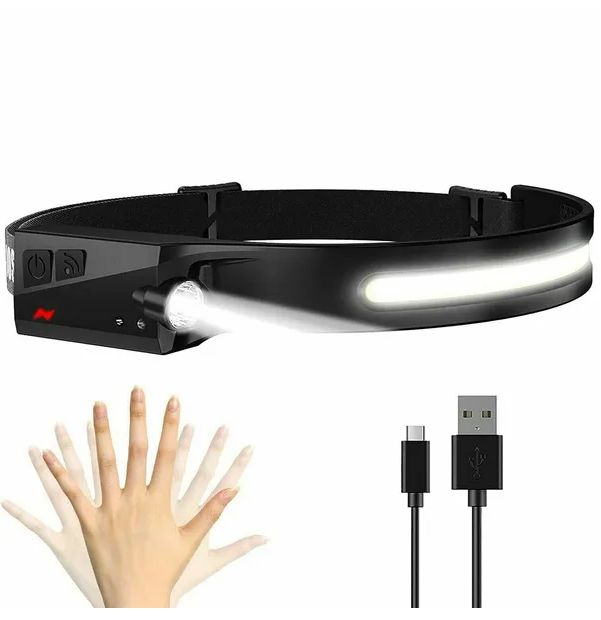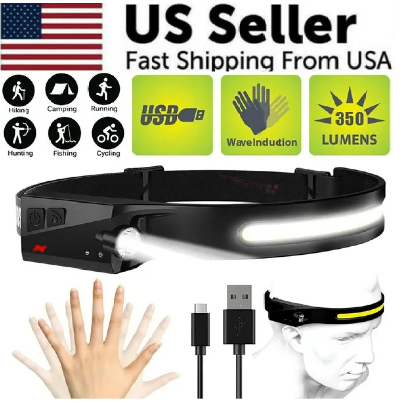 COB LED Headlamp USB Rechargeable Headlight Torch Work Light Bar Head Band Lamp