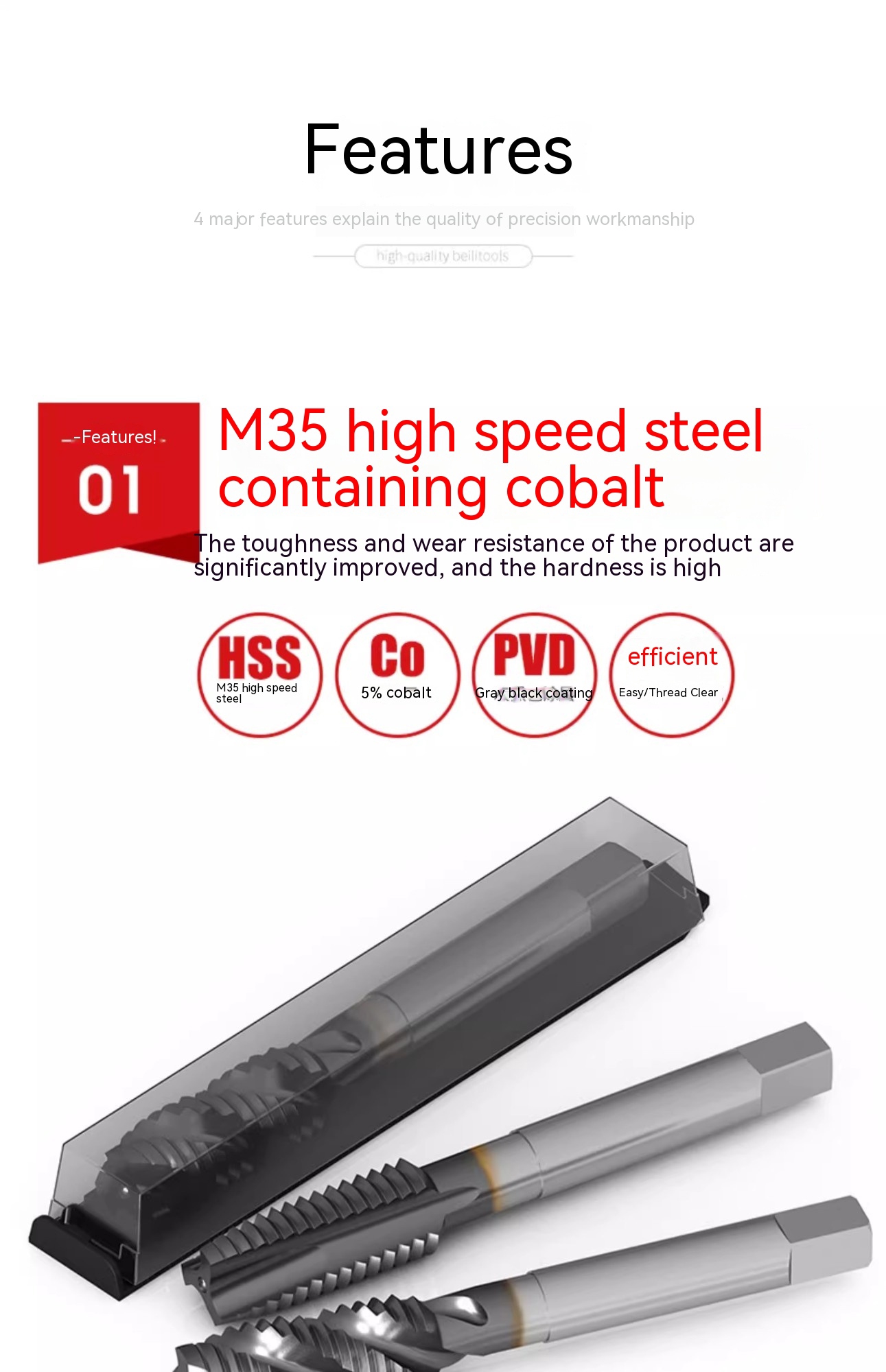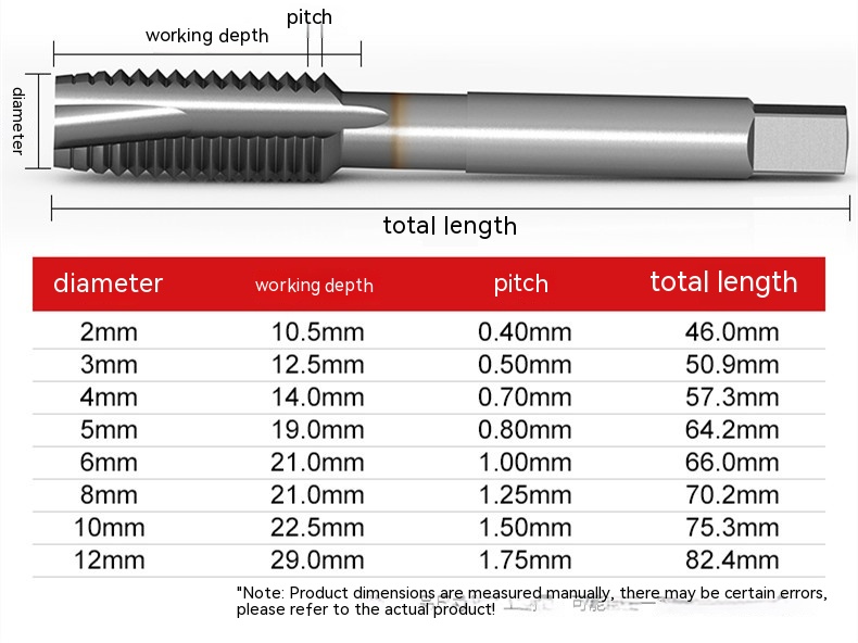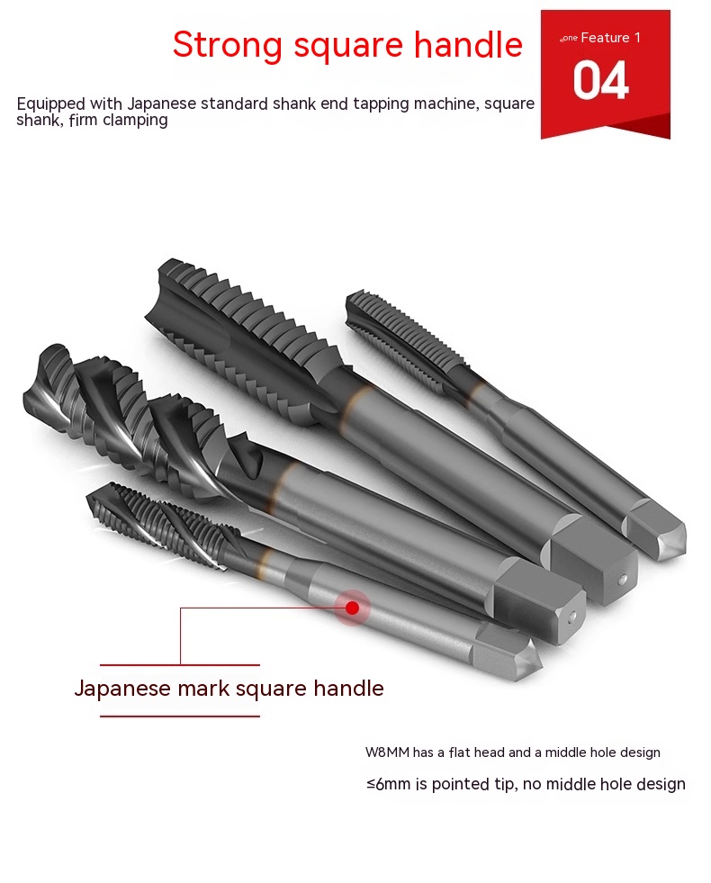 Features: The M3-M6 handle is all pointed (the pointed end can be ground flat on its own); M8 and above are flat headed