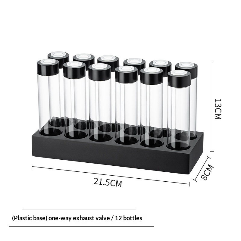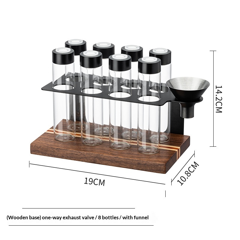 Colors: (6-bottle set) Sealed coffee bean display stand (with silicone funnel), (12-bottle set) Sealed coffee bean display stand (with silicone funnel), (8-bottle set) Wooden sealed coffee bean display stand (with steel funnel)