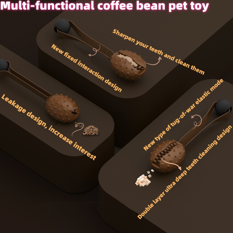 Coffee Bean Toy For Pets Tooth Cleaning Ball Leaks Rope Knot Slow Eating Tpr Dog Bite