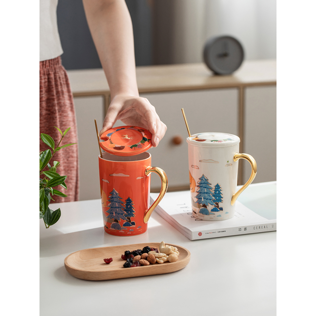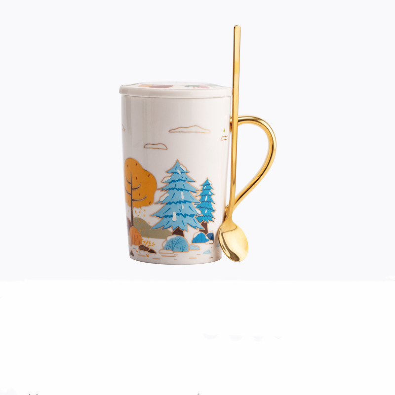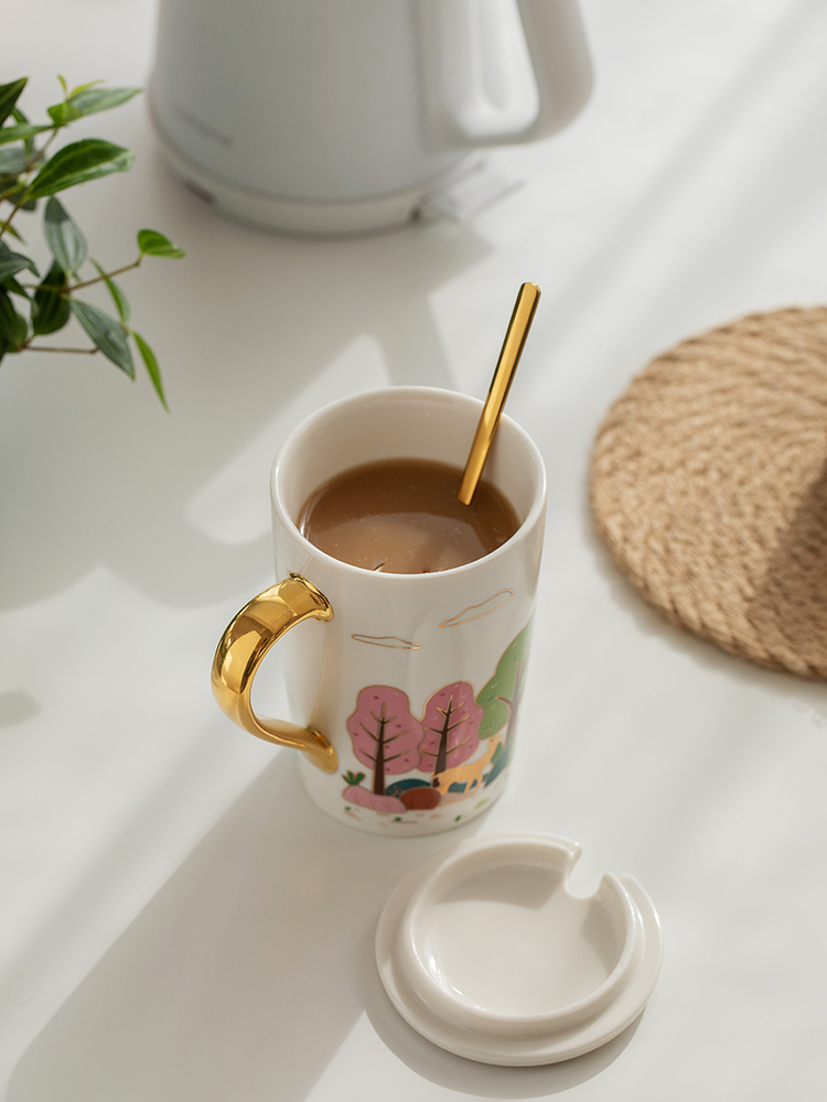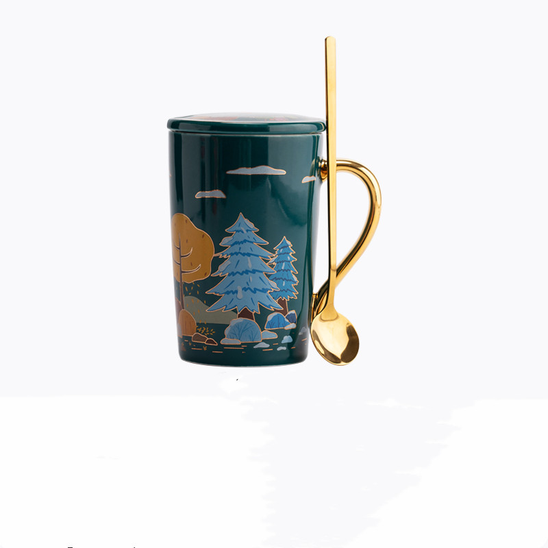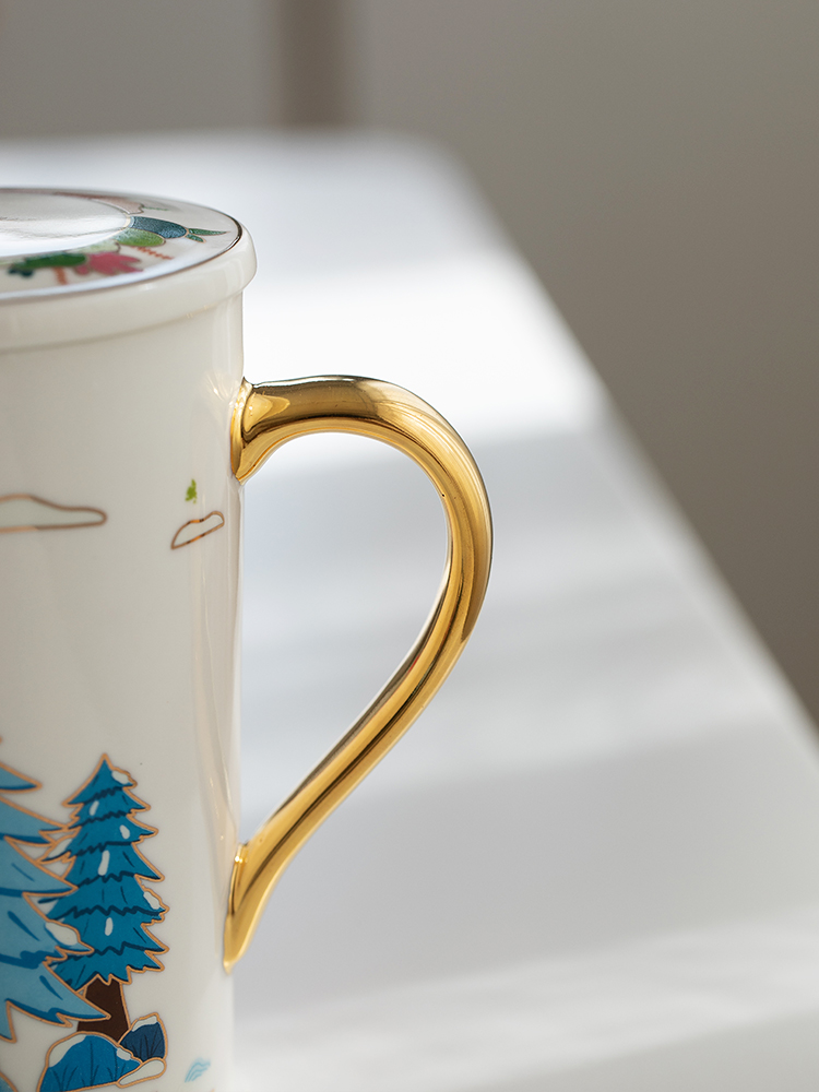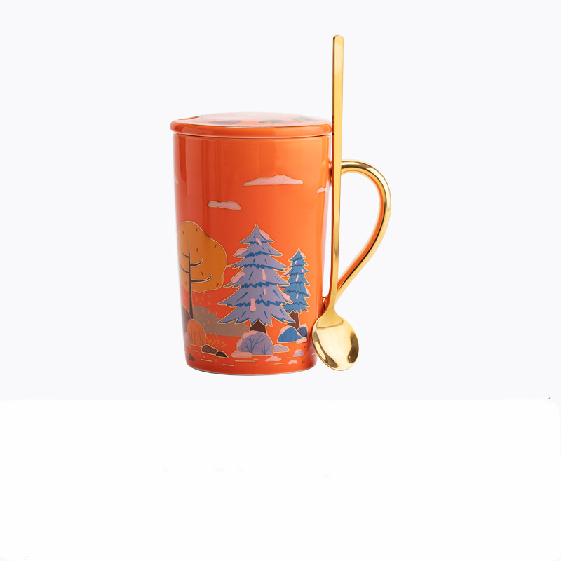 Color Classification: Four Seasons Mug (Milk White + Gilt Handle), Four Seasons Mug (Vitality Orange + Gilt Handle), Four Seasons Mug (Dark Green + Gilt Handle), Four Seasons Mug (Gray Black + Gilt) Golden handle)