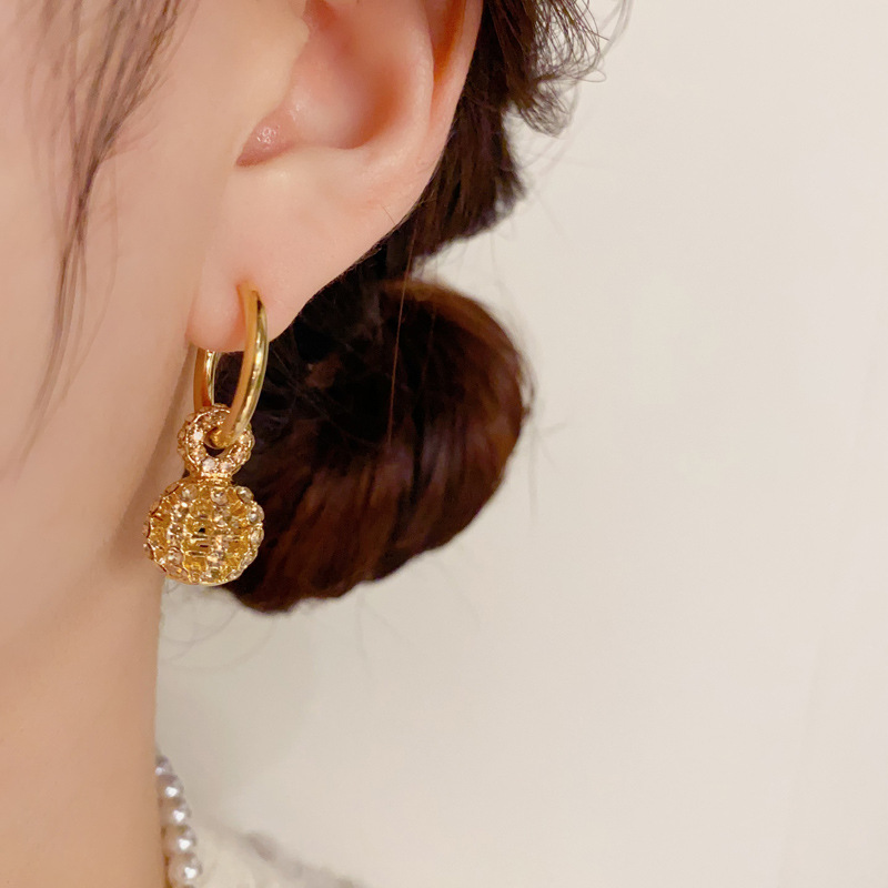 Color: coffee color full diamond hollow ball ball ear clip (thick real gold plating)