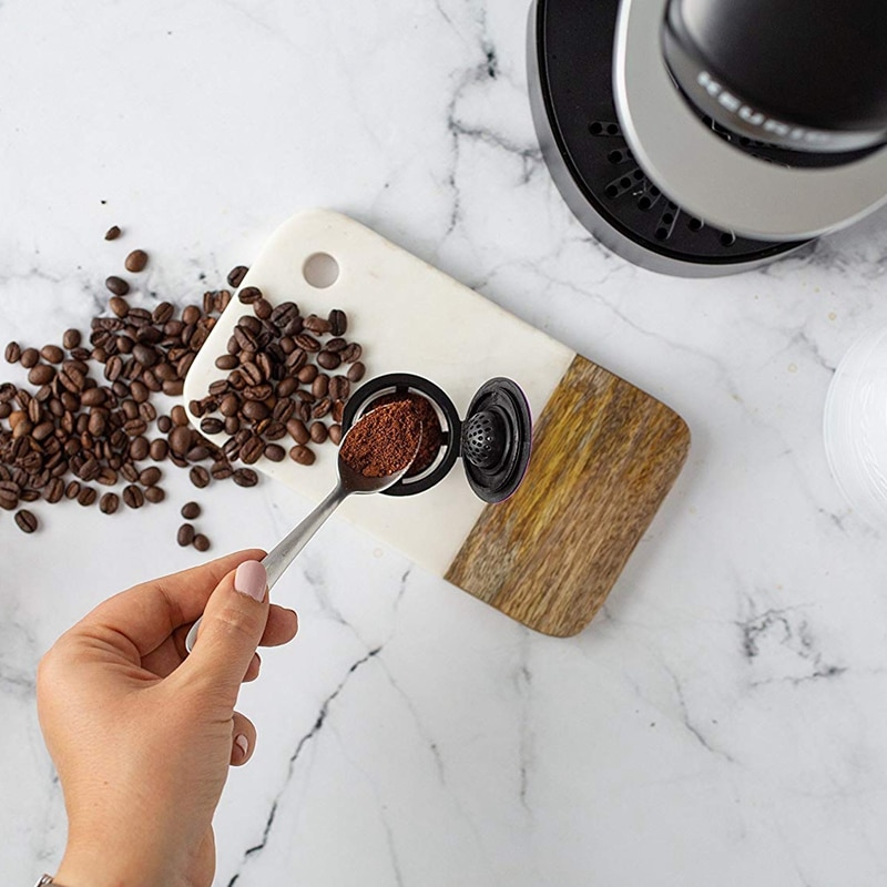 Use your favorite gourmet ground coffee by filling up the Reusable filter and placing it into the K-cup Holder in your brewer (Just like a regular K-cup portion pack)