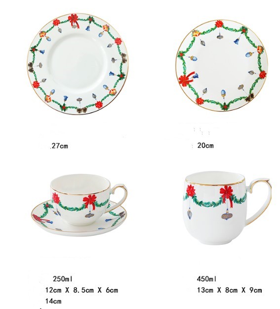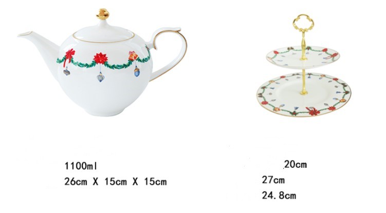 Color categories: Coffee Cup and Saucer (Merry Christmas), Teapot (Merry Christmas), 8 inch Plate (Merry Christmas), 10.5 inch Plate (Merry Christmas), Double Plate (Merry Christmas), 1 Teapot 2 Cup and Saucer (Merry Christmas), 1 Teapot 4 Cup and Saucer Gift Box (Merry Christmas)