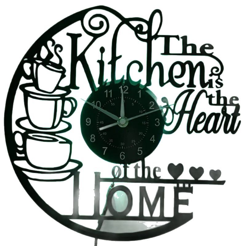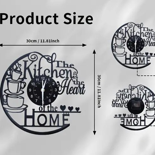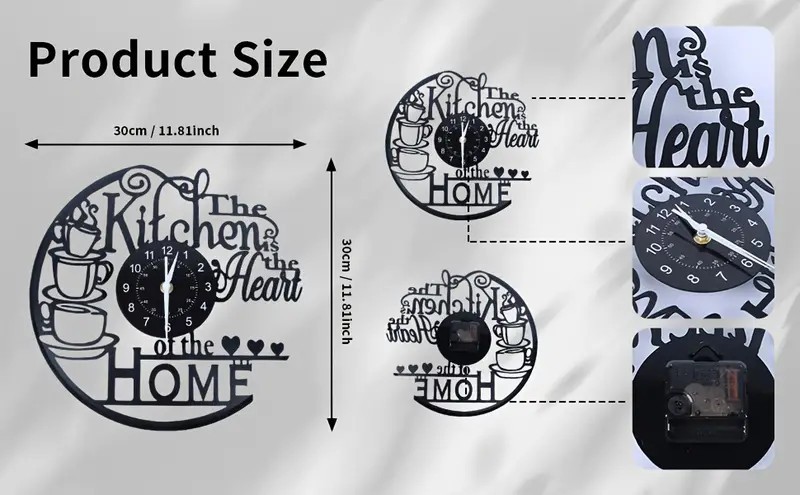 Coffee-patterned Silent Sweep Second-hand Vinyl Record Clock