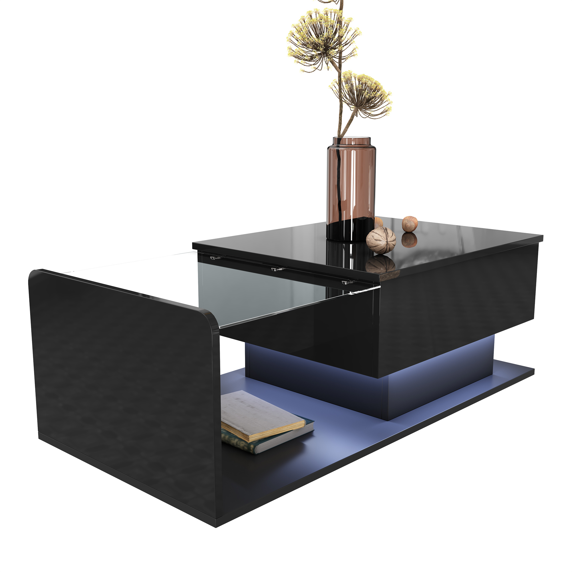 Product Name:Coffee Table, High-Gloss Black, Side Table, Coffee Table with Glass and LED Effect, with Glass Top