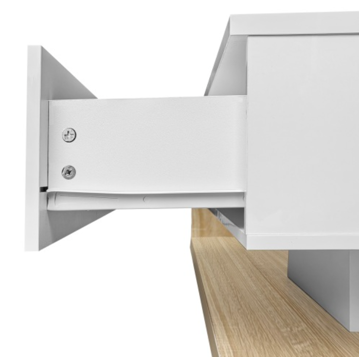 This exquisite coffee table combines natural wood tones with a high-gloss white finish to become the stylish focal point of your living room. With generous dimensions of 105 cm long and 55 cm wide, it offers ample space for decorative items, drinks and other living room elements. The thoughtful design includes a practical storage compartment measuring 60 cm x 17 cm, ideal for neatly storing magazines, books or remote controls, ensuring a tidy look. Made from high-quality materials, this coffee table ensures durability and stability. The table's solid base further contributes to its robust structure and ensures that it stands safely and firmly. With a height of 32.5 cm, this coffee table is perfect for easy access from the sofa, making it both functional and practical for everyday use. Whether you are entertaining guests or spending a cozy evening at home, this coffee table will meet all your needs while bringing a touch of modernity and elegance to your home.