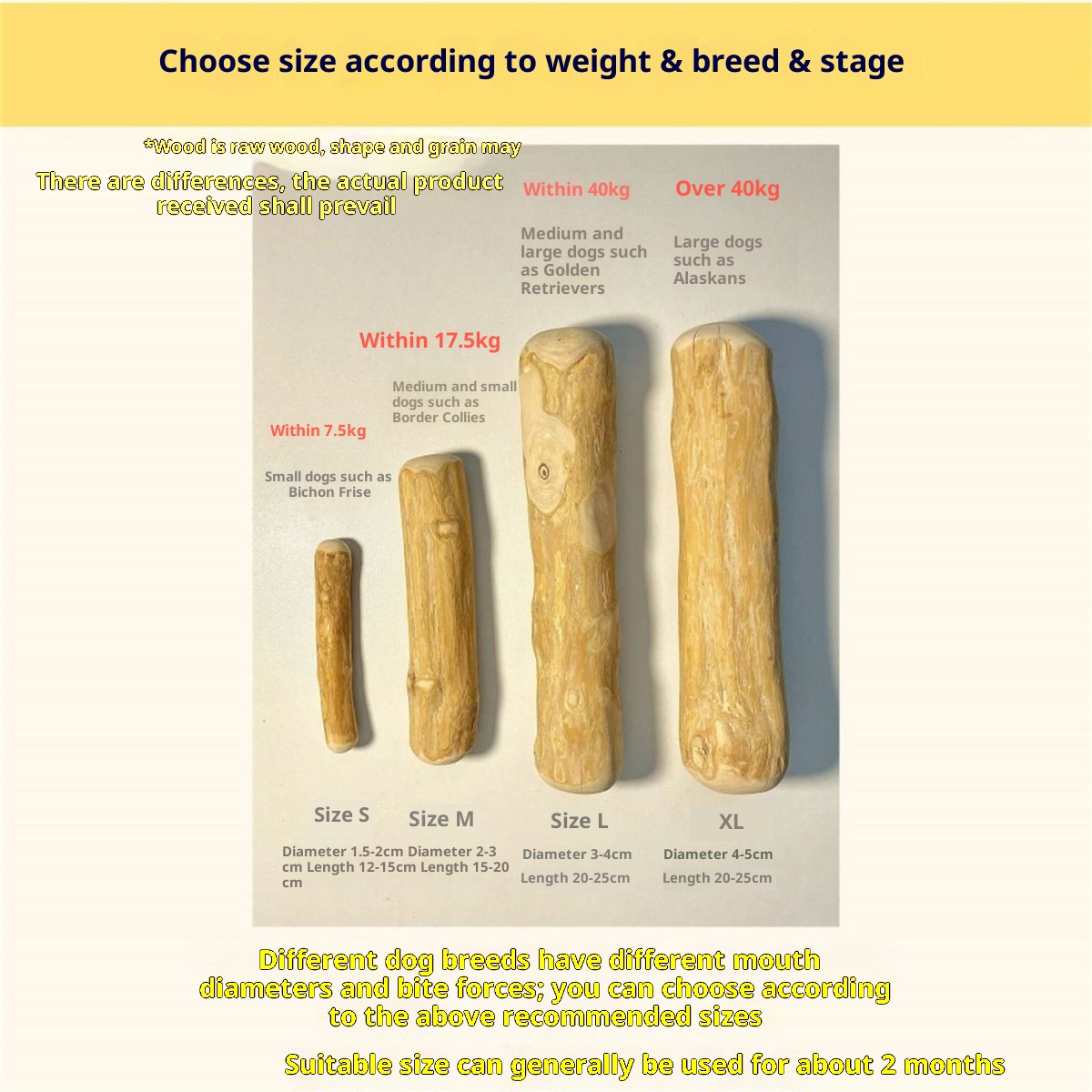 Color: S 1.5*13cm, M 2*15cm, L 3*18cm, XL 4*20cm, single-head knot style, double-head knot style, twisted style, coffee wood original color